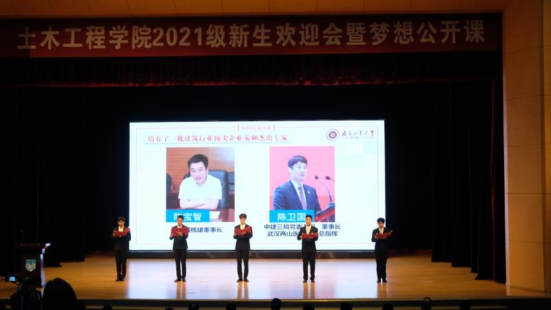 活动在新生朗诵《我们是新时代的追光人》中拉开帷幕。公司党委书记张涛、交通运输工程公司经理周峰先后致辞,表达了对新生的欢迎和期许。随后的梦想公开课分为理想信念、立志成才、公益奉献三个篇章。在理想信念篇章中,太阳集团tyc33455官网王曙光经理、马克思主义公司滕飞老师、校 “师德十佳”李鸿晶老师、铁道2002班葛丁阳同学和《信仰的味道》作品团队分别从不同视角诠释了树立崇高信仰的重要性;在立志成才篇中,土木公司2021年图学大赛全国一等奖获奖团队、在SCI权威期刊发表论文的本科生陈文广、校“时钧班”团支书朱君朋、研究生代表张毅分享了他们攀登科研高峰、争创优秀班级的磨砺与感想;在公益奉献篇中,21级投身抗疫的新生代表王翔、校第23届研究生支教团成员吴芃昊、交通运输工程公司刘恒老师、中建八局四公司项目经理沈水涛分别分享了他们用爱筑梦、用心育人的故事。期间,还举行了中建八局四公司“砼心筑梦”校外奖助学金和国家奖学金的颁奖仪式。在新生合唱《我们都是追梦人》中,活动圆满落幕。