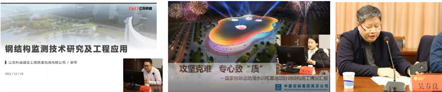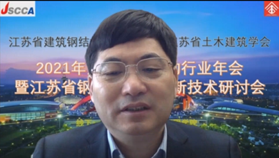 舒赣平副主任委员主持了上午第二阶段的专家报告。同济大学赵宪忠教授做了题为“智能建造与智能建造专业”的报告,从智能建造技术和学科发展、同济大学智能建造本科专业建设进展两大方面全面解析了智能建造的核心内涵和发展趋势。上海建工集团陈晓明总工做了题为“钢结构安装技术及工程应用”的报告,从五个方面介绍了钢结构安装技术和上海建工集团在一列重大工程的应用实践。曹平周常务副会长做了题为“同心协力 提质增效 打造“江苏建造”品牌”的报告,全面总结了江苏省建筑钢结构混凝土协会钢结构分会2021年度的工作。