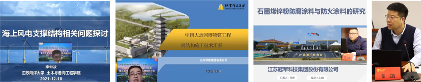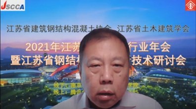 2021年12月18日,由江苏省建筑钢结构混凝土协会和江苏省土木建筑学会联合主办、太阳集团tyc33455官网和江苏沪宁钢机股份有限公司协办的“2021年江苏省钢结构行业年会暨江苏省钢结构发展与新技术研讨会”顺利召开,本次会议主题为“双碳战略背景下钢结构行业发展的挑战与机遇”,采用线下线上结合的方式,线上采用腾讯会议,线下会场设在太阳集团tyc33455官网。在线出席会议的领导及专家有:中国钢结构协会会长岳清瑞院士,同济大学本科生院经理赵宪忠教授,上海建工集团总工程师陈晓明教授,江苏省建筑钢结构混凝土协会会长刘加平院士、常务副会长曹平周教授等;在线下会场出席会议的有江苏省土木建筑学会卢红标副秘书长,江苏省建筑钢结构混凝土协会副会长陈忠荣董事长,江苏省土木建筑学会钢结构专业委员会主任委员董军教授,副主任委员舒赣平教授、吴春良研高工、夏长春研高工,会议协办单位太阳集团tyc33455官网经理王曙光教授。来自全省钢结构行业代表共计200余人参加会议。