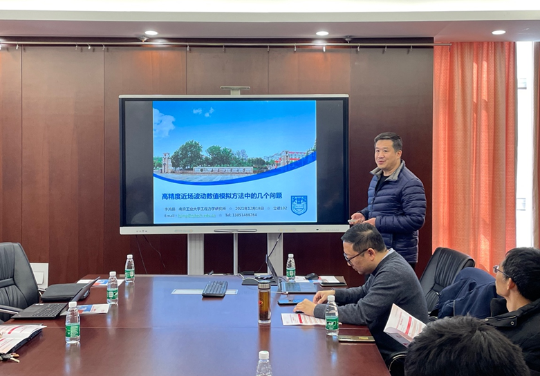 会上,李鸿晶教授以“高精度近场波动数值模拟方法中的几个问题”为题,介绍了其课题组近几年在谱单元、高精度数值方法及数值漂移控制等方面的研究进展,并指出在当前形势下,发展自主可控数值方法和软件的必要性和迫切性。杜东升教授介绍了其课题组在减震结构附加阻尼比计算方面的研究进展,对结构在简谐激励、地震激励及复杂材料本构情况下的附加阻尼计算方法作了深入探讨。随后万里教授回顾了国内外压剪实验装置的历史和现状,指出目前压剪实验中存在的常见问题,并介绍了目前公司在建的一种新型4000吨压剪实验机设计方面的研究成果。岳孔教授围绕装配式木结构抗火问题,介绍了其课题组开发的新型墙体用结构覆面板阻燃剂,并在产品制造工艺上做到了原始创新,相关研究成果荣获2020年度国际木材科学技术学会George Marra Award论文一等奖。赵爱国教授结合我国在核潜艇静音控制领域的重大技术需求,介绍了其在水下声学隐身衣设计方面的研究进展,并对自适应可变声学隐身技术做了展望。岳健广教授针对目前3D打印混凝土力学性能方面的热点问题进行了深入探讨,介绍了其课题组所提的基于声发射检测微观开裂技术,以及基于机器学习的微观开裂模式判别算法方面的最新研究成果。杨放高工介绍了热成像仪和无人机等新型工具和技术在建筑围护结构整体热工缺陷检测的应用案例。最后刘闯老师、李奔奔老师、徐积刚老师、蔡云竹老师和吴鹏老师分别以“水力压裂裂缝扩展数值模拟研究”“基于真三轴试验的复材约束混凝土塑性损伤本构模型”“机理-数据驱动的混凝土桥梁全寿命性能评价”“基于Kriging的输电塔抗风能力建模及其在易损性评估中的应用”“基于粘弹性理论的复合材料结构蠕变性能研究”为题,给大家分享了他们最新的科研成果。