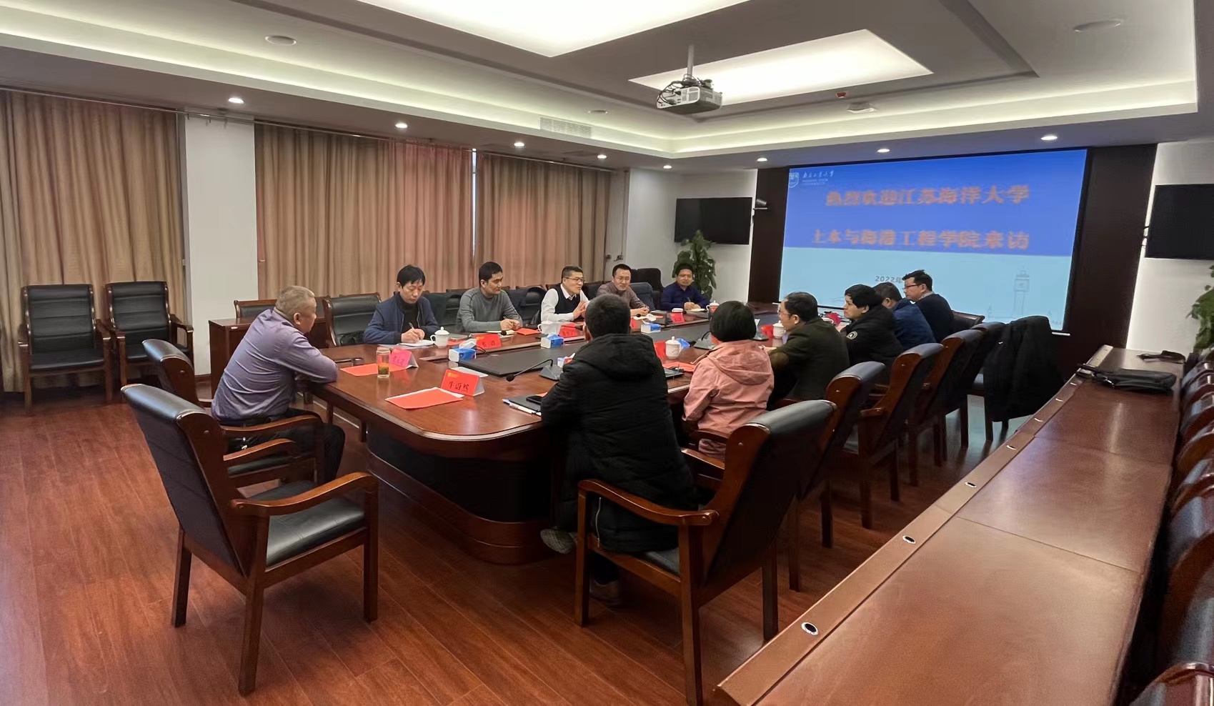 王曙光经理对江苏海洋大学土木与港海工程公司一行的到来表示热烈欢迎,并介绍了公司发展的基本情况。王俊副经理介绍公司学科竞赛的开展情况及成效,岳健广副经理分享了工程教育认证的工作经验。党委副书记路遥及院办张元超老师介绍了公司举办结构创新竞赛的办赛经验。宗钟凌经理介绍了土木与港海工程公司的发展历程和基本概况,对公司去年成功举办第十七届江苏省老员工工程结构创新竞赛暨第十四届全国老员工结构设计竞赛江苏分区赛表示热烈祝贺,对倾囊相授宝贵的办赛经验表示衷心感谢,对公司在土木工程专业工程教育认证中所做的工作表示充分的肯定。他还强调公司积极响应兴海强国的国家战略,突出港海特色,期待与公司开展科技项目合作。