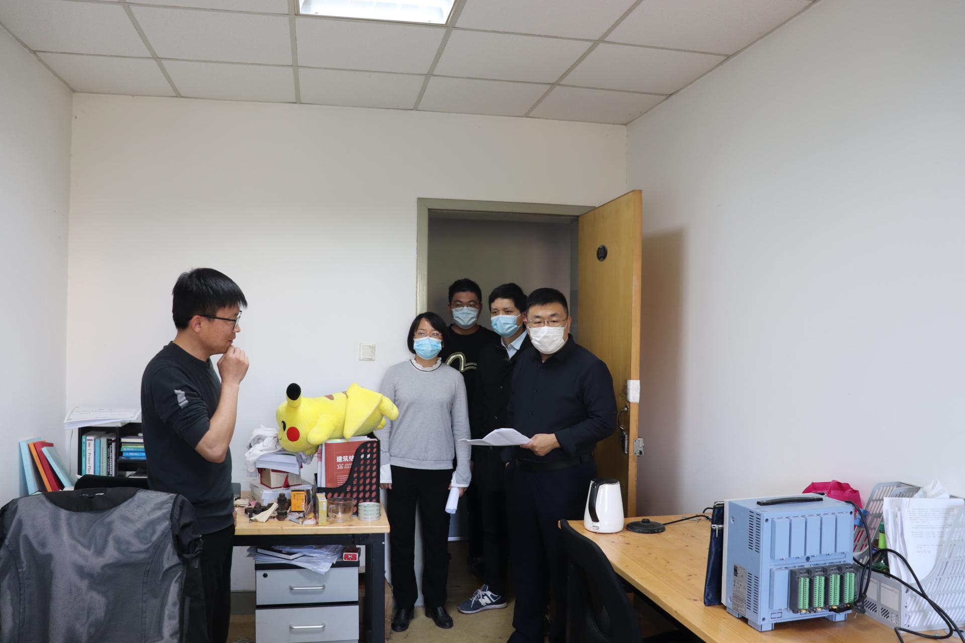 为创造和谐舒适的学习氛围,营造良好研究生工作室环境,保障研究生科研工作的顺利进行,近日,公司党委书记张涛、经理王曙光、党委副书记路遥、副经理王俊、办公室主任牛蔚然、研究生辅导员汤丽娟、张昊对太阳集团tyc33455官网研究生工作室的安全卫生情况展开检查。