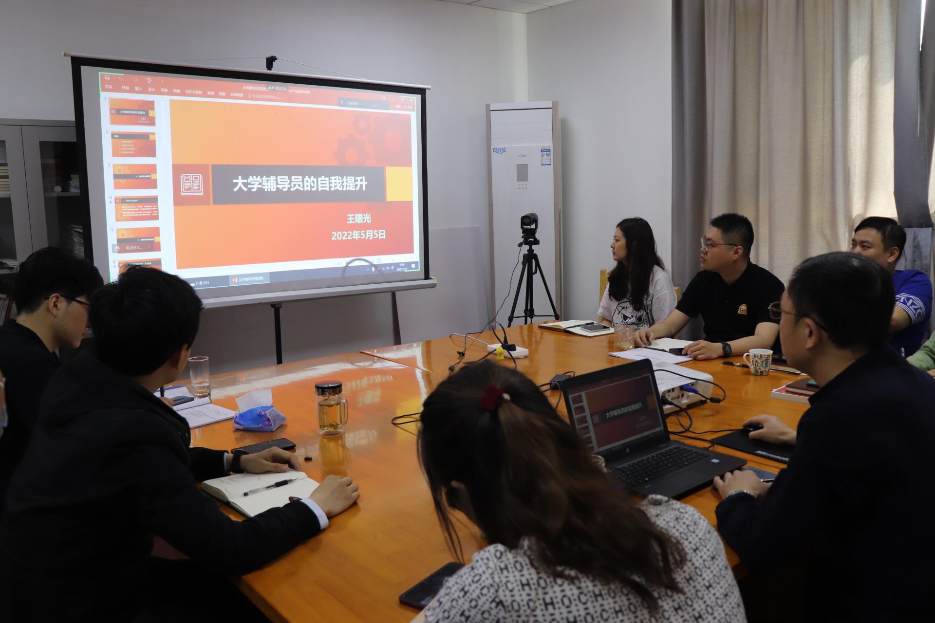 王曙光经理首先对疫情防控期间公司辅导员闻令而动、主动担当、坚守一线表示肯定。随后,王经理结合自身丰富工作经历和公司特点,从辅导员的重要性、辅导员的角色定位、辅导员工作的普遍问题和辅导员的自我提升路径等四个方面与辅导员们深入交流。王经理结合辅导员的九大职责,分析了辅导员日常工作存在的普遍问题,并从基本素质培养与相关能力提升两个方面提出了辅导员自我提升的路径。他希望辅导员通过读史、懂心理、懂管理来培养基本素质,通过实践工作提升专业水平、通过课题申报提升理论水平、通过写作汇报提升表达水平。他勉励全体辅导员一要全面充实自我,二要做精日常工作,三要挖掘研究素材,四要总结提炼提高,在提升职业能力素养的同时以实际行动践行“爱与服务”学工理念。
