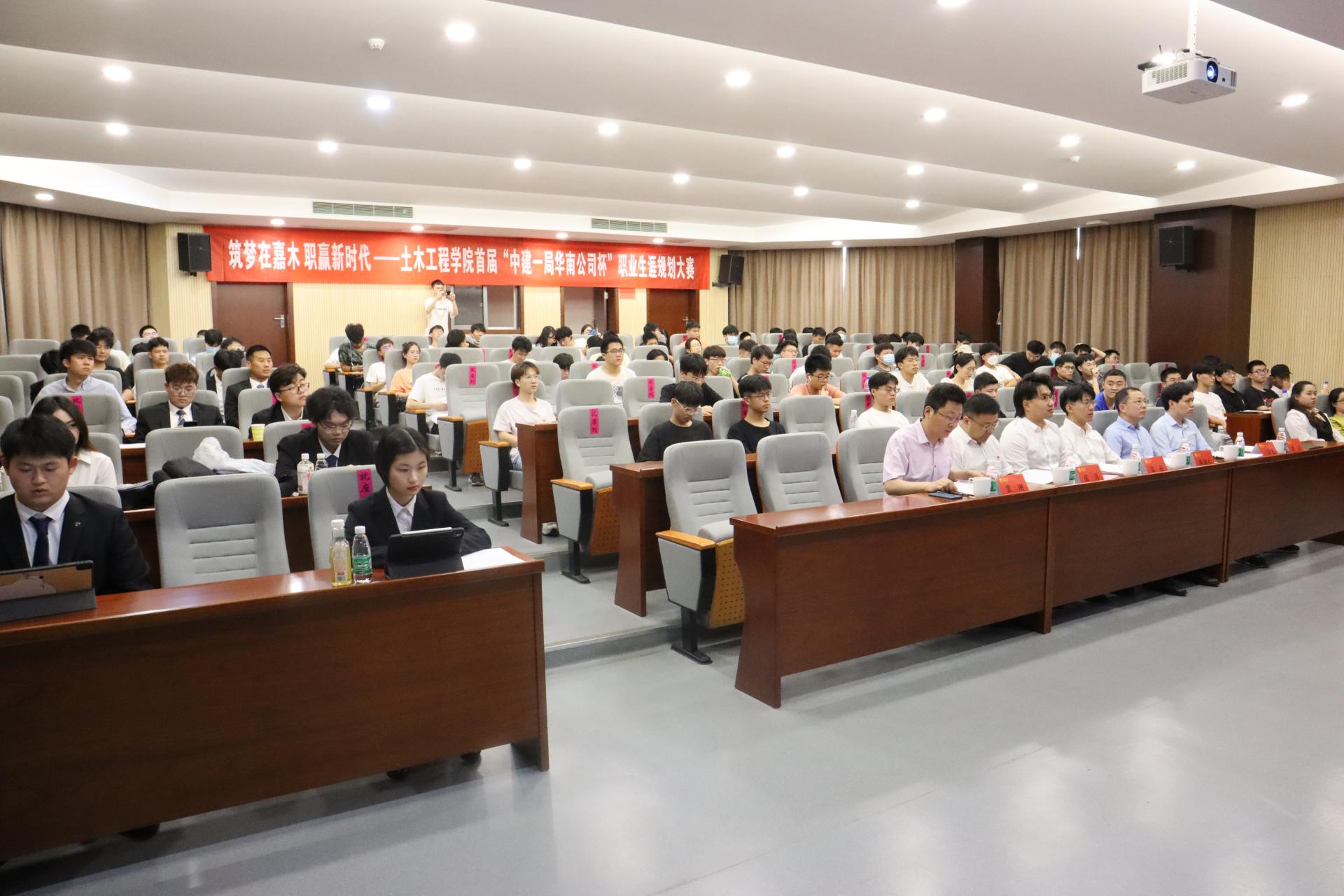 张翔副处长在大赛致辞中感谢中建一局华南公司长期以来对公司就业工作和产教融合工作的大力支持。郑超副经理向与会人员介绍了公司的基本概况。随后,10位选手通过生涯规划作品PPT陈述和现场答辩环节展示了他们的职业兴趣测试结果、自我认知程度和职业发展路径。经过激烈的角逐和比拼,土研2101黄敬松同学荣获一等奖。王曙光经理作大赛点评,他表示通过大赛进一步锻炼了同学们PPT制作能力和现场展示能力,希望同学们脚踏实地,勤奋务实,早日收获自己属于自己的成功。张涛书记在总结讲话时表示,机遇总是留给有准备的人,希望同学们及早设计好自己的人生目标,自觉把个人的理想追求融入国家和民族的事业中,勇做走在时代前列的奋进者、开拓者。