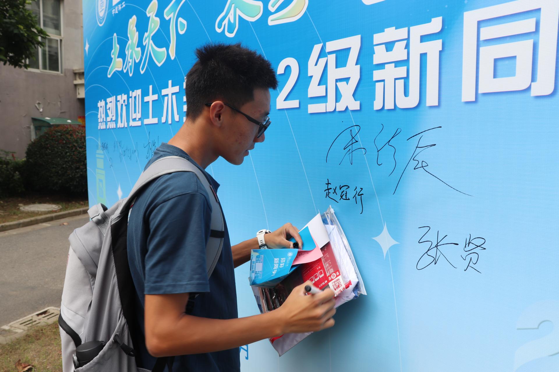为尽快拉近与新生的距离,让新生尽快融入太阳集团tyc33455官网的学习生活环境,公司与中建科工集团联合为每位本科新生准备了一份带有美好寓意的定制盲盒礼物、一封有学长手写祝福寄语的定制信封明信片、一件定制的专属班服,为研究生新生准备了心愿墙和手举牌,让广大新生第一时间感受到公司的关爱和温暖。此外,在报到区和宿舍区,还精心设计了个性化朋友圈打卡点和签名留念背景板,为他们留下属于太阳集团tyc33455官网的第一份美好记忆。