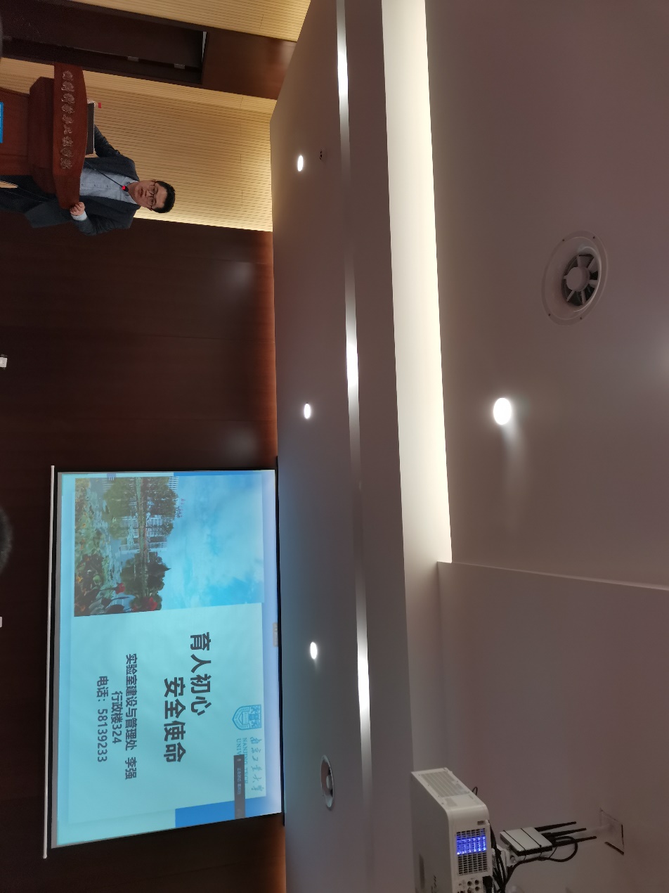 保卫处李智副处长从消防法律法规、正确认识火灾、火灾应急措施、校园火灾预防、火灾事故案例等多角度进行消防安全知识专题培训。实验室建设与管理处李强老师结合实验室典型事故案例和上级、公司实验室安全相关要求,希望实验室负责人、导师能够从实验室安全教育和安全检查等方面多“下功夫”,真正做到“让安全成为习惯,让习惯更加安全”。