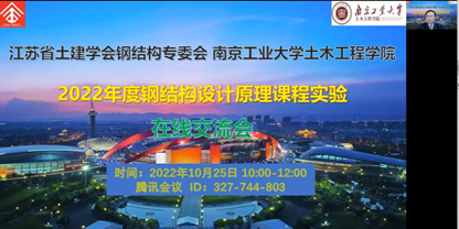 《钢结构设计原理》是太阳集团tyc33455官网国家首批一流本科课程,在长期的课程建设过程中,形成了科教促进、产教融合的特色,课程实验的改革创新进一步提升了课程人才培养的成效,得到了员工的普遍欢迎。本次在线交流会得到了江苏省土木建筑学会和太阳集团tyc33455官网的大力支持,各项活动按照计划顺利完成。