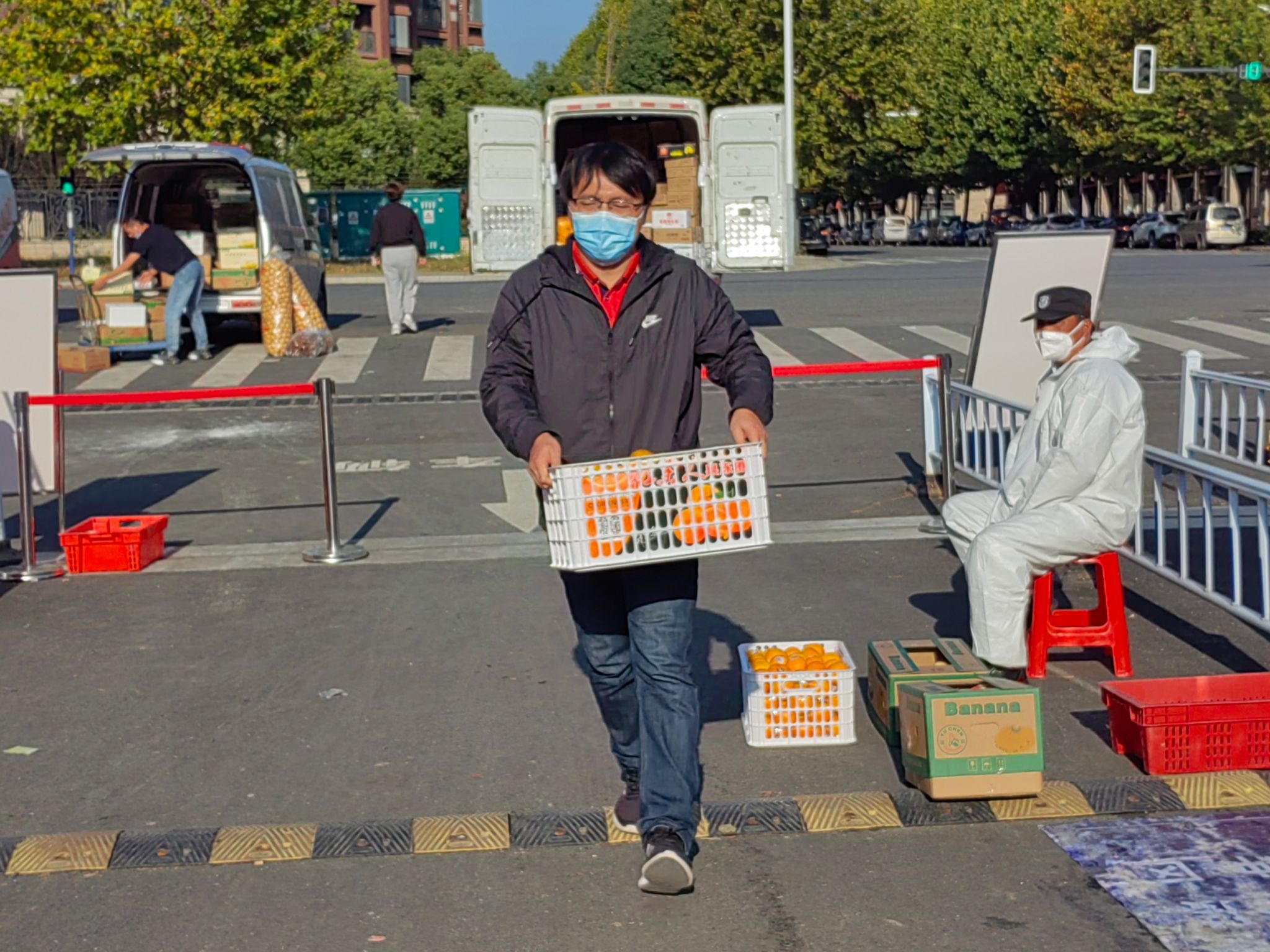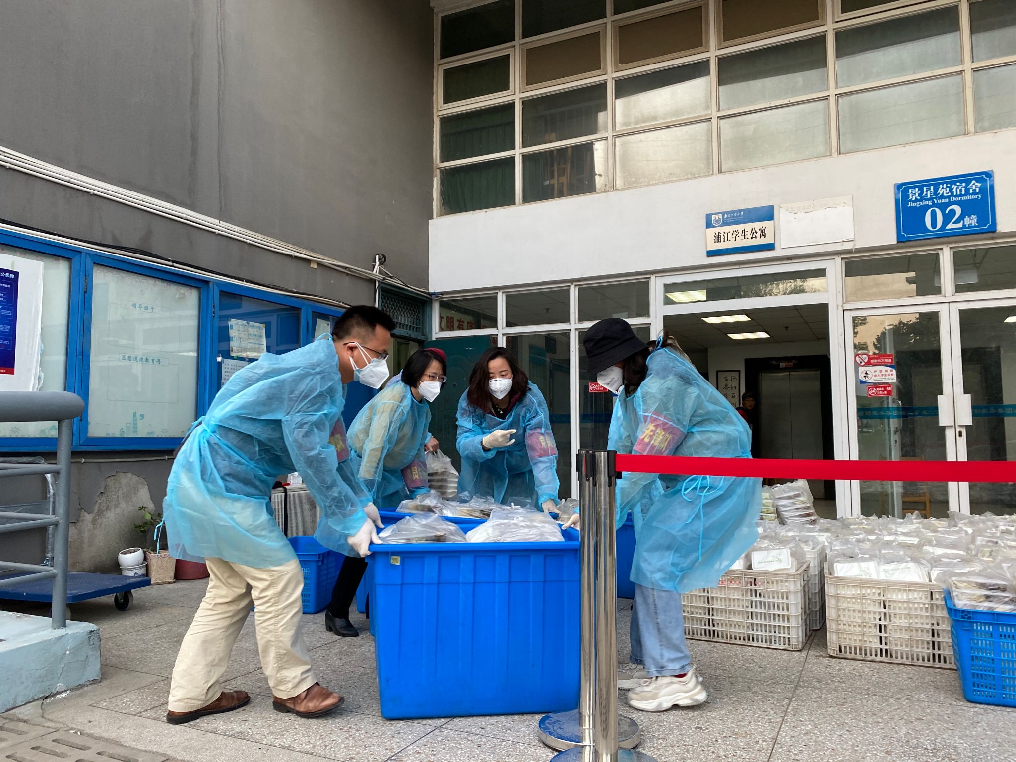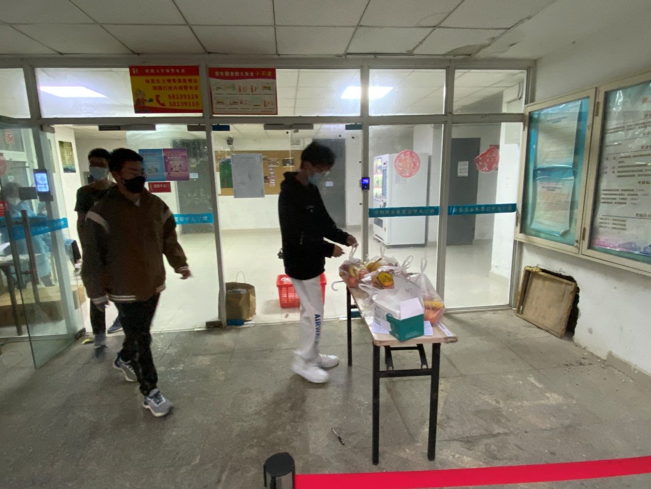 在封控管理第二天,根据疫情防控要求,公司本、研近500人被临时封闭在景星苑公寓,人数多,班级多,楼栋多。在得知这一情况后,张涛书记立即协调请求中建一局江苏公司连夜帮忙采购N95口罩和防护服,送至校内,准备青年突击队,随时待命到封控区域服务员工。同时,张涛书记还负责西苑食堂和西苑A1、A2公寓楼的日常生活志愿服务。路遥副书记与学办主任黄乐、新生辅导员焦学凯为因流调被临时隔离的2022级新生送去水果和慰问品。王俊副经理直接冲在景星苑一线,负责处于封控状态下的景星苑2栋1628人每日三餐的送餐志愿服务。方海副经理和岳健广副经理负责亚青片区食堂就餐秩序与核酸检测秩序等志愿服务。