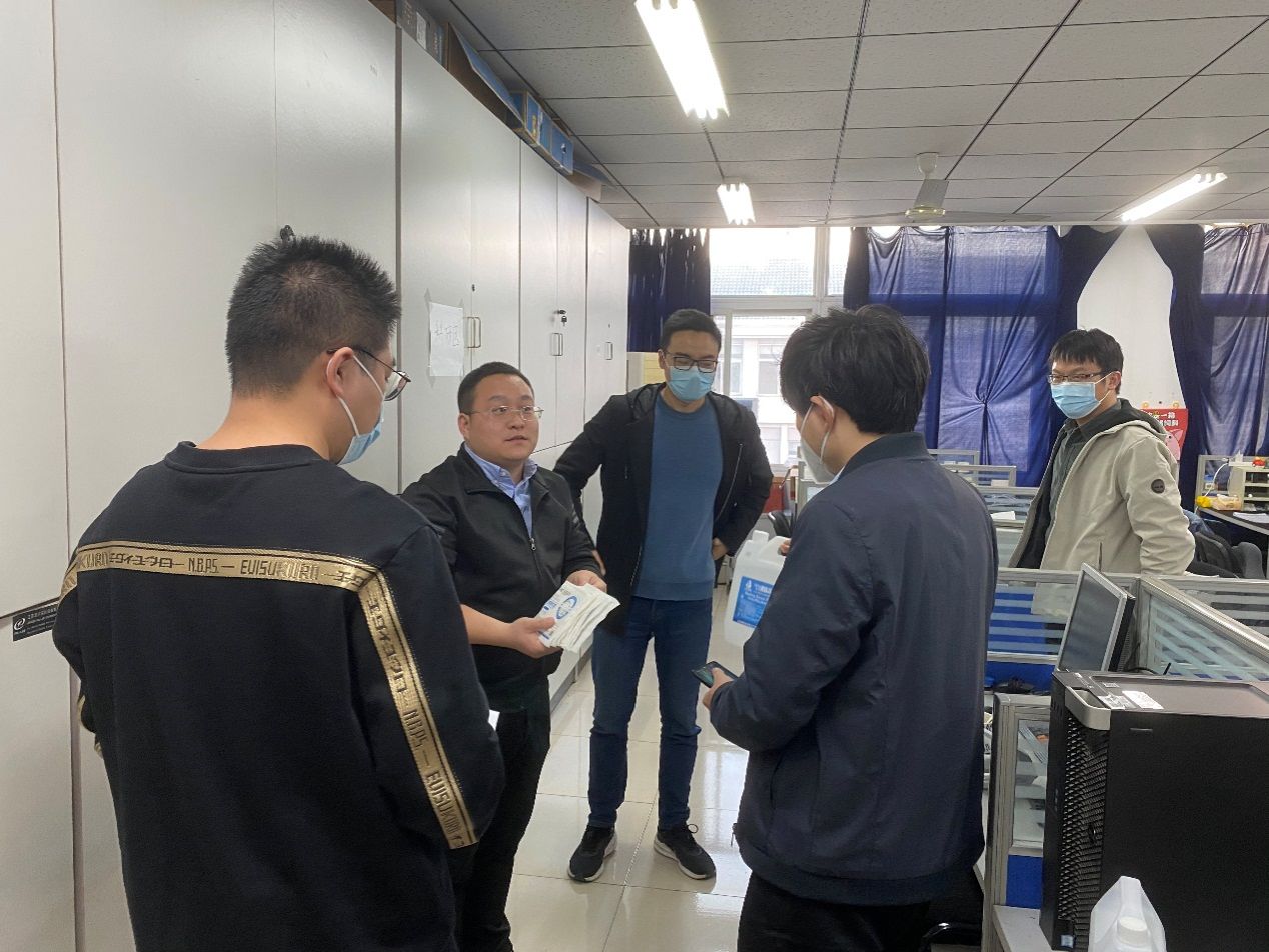 在做好疫情防控的同时,安全工作同样不能放松。南京金盛百货的大火给消防安全再次敲响了警钟。公司党委书记张涛、副经理岳健广、经理助理杨会峰、霍瑞丽,实验中心主任万里等老师第一时间赴公司各实验室再次进行安全检查。公司党委副书记路遥和研究生辅导员张昊、汤丽娟赴研究生工作室检查安全情况并为留守研究生送上防疫物资。防疫工作和安全工作同步推进,同抓共管,确保做到工作全覆盖,人员全覆盖,环节全覆盖。做到不漏掉一人、不漏掉一平方米、不漏掉一件事。