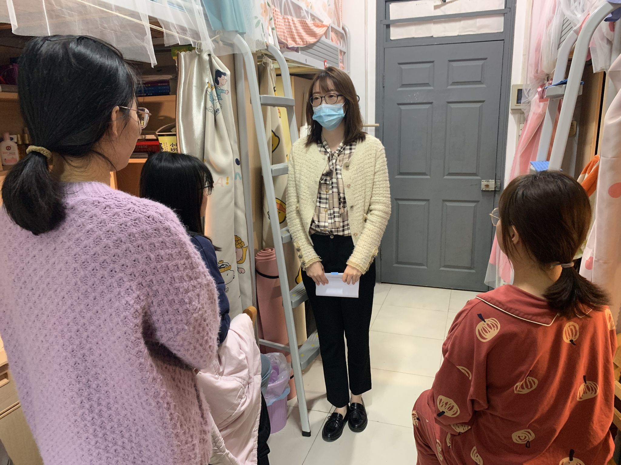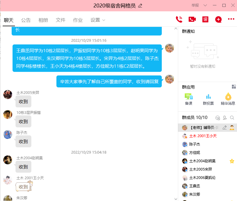 全体辅导员第一时间构建员工管理五级网格表,确定楼长、层长、宿舍长等网格员关键信息,建立员工宿舍楼栋内联络渠道,提前做好预案和演练。同时,全体辅导员下沉每一间宿舍、每一张床位,仔细摸排人数,确保不漏一人、不错一人。辅导员每天收集所带员工的全部核酸截图,并按天按班级分类保存。