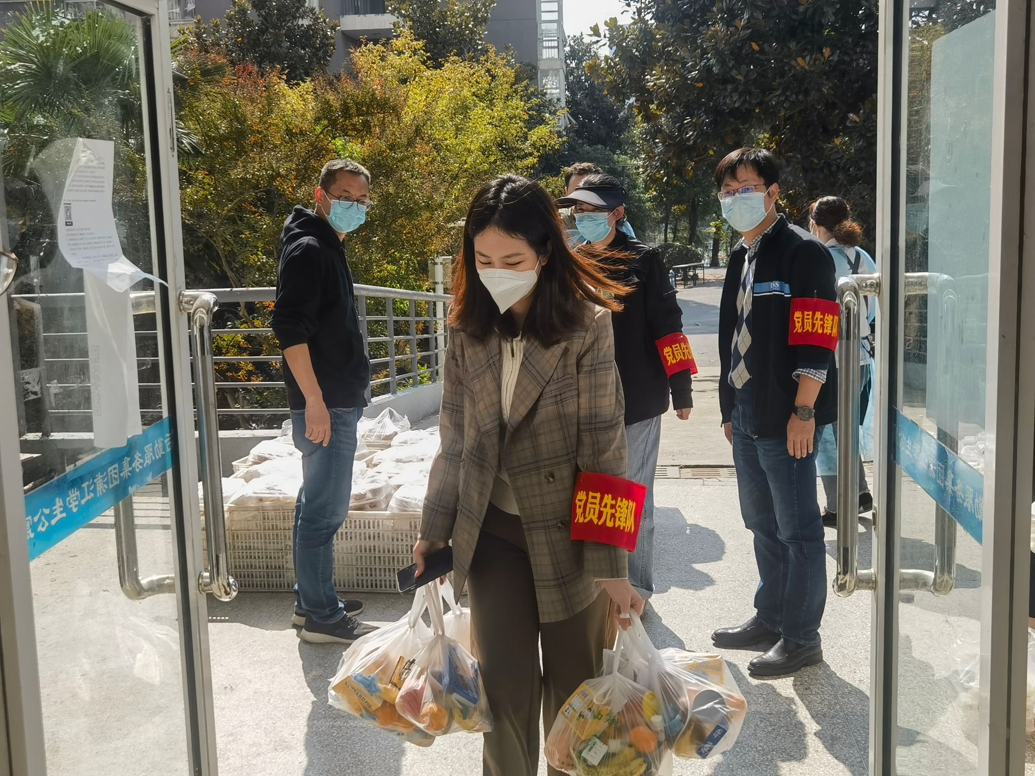 在公司志愿服务组基础上,李枝军、赖韬两位老师主动参加景星苑片区志愿服务,杨会峰、史本凯、徐积刚三位老师主动补充志愿服务第32组,宋玉鹏、张新晨两位老师主动参加亚青片区食堂就餐秩序服务。他们的主动作为、甘于奉献的精神令人感动。辅导员张昊老师自己所带的180多位研究生隔离在景星苑,同时还要担任景星苑2栋楼长,除负责自己所带员工日常管理以外,作为楼长还需提前一天清点盒饭数量,与后勤人员沟通,并在每天早晨7点前赶往现场,协助搬运1200余份盒饭。辅导员姜小雨老师、汤丽娟老师被临时安排为景星苑教师志愿者,在做好日常盒饭配送工作的同时,也将紧急物资送到需要的同学手中。