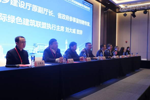 省住房和城乡建设厅原副厅长、省政府参事室特聘专家、国际绿色建筑联盟执行主席刘大威致欢迎辞,他向与会专家学者表示热烈欢迎,强调了发展现代竹木结构符合国家碳减排、绿色发展的重大战略,并预祝大会取得圆满成功。公司党委常委、副董事长陆伟东教授介绍了公司总体办学情况和公司现代木结构研究团队近年来取得的成绩。校国际合作处处长佴康、公司党委书记张涛分别从国际合作与科产教融合的角度提出宝贵建议。江苏省土木建筑学会副理事长兼秘书长王华、中建三局集团有限公司副总经理侯玉杰在致辞中强调了学科交叉和产教融合的重要性。会议期间还发布了《江苏省木结构发展蓝皮书(2022年度)》,并举行了2022年江苏省竹木结构研究生优秀学术论文颁奖仪式。开幕式由公司党委教师工作部部长、人事处处长王曙光教授主持。