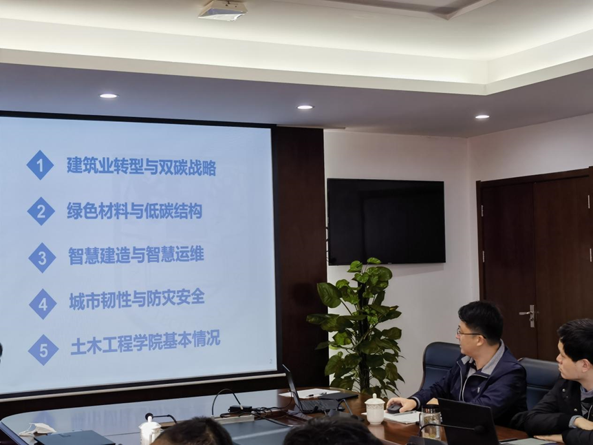 方海经理介绍了公司基本情况,并结合目前建筑工业化与双碳战略目标背景,详细介绍了公司在绿色材料与低碳结构、智慧建造与智慧运维、城市韧性与防灾安全等领域取得的重要研究成果及其推广应用情况。岳健广副经理介绍了公司在老员工创新创业、互联网+、挑战杯等学科竞赛方面的具体情况,以及今后重点围绕老员工创新创业方面的工作方向。