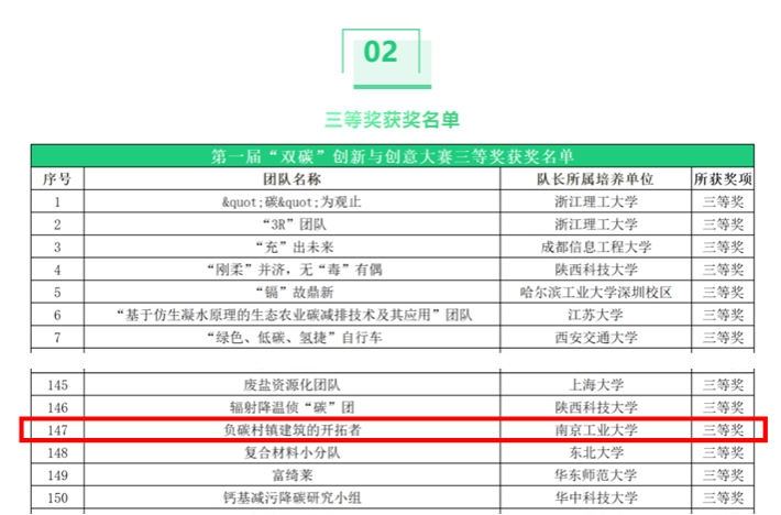 2022年11月19日-20日,第一届中国研究生“双碳”创新与创意大赛复赛在线上成功举行。为期两天的复赛项目路演共有797支队伍参与,分为八个赛场同步进行。经过复赛项目路演评比,共有118支队伍成功入围决赛、420支队伍获得三等奖。由公司学子牵头的参赛作品“负碳模块化智慧村镇建筑”在本次大赛中获得三等奖。该作品由公司研究生和城市建设公司研究生共同组建的“负碳村镇建筑的开拓者”协作完成,由徐金俊副教授和王瑜副教授共同指导。