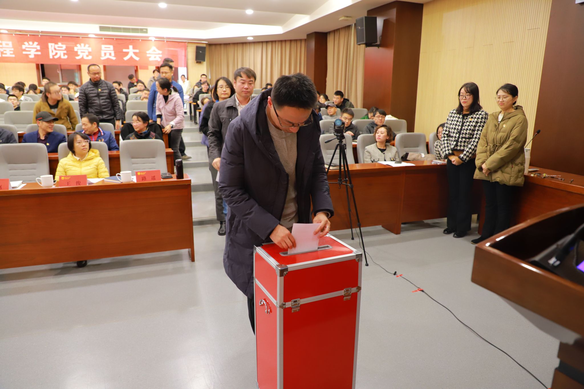 随后,新一届党委在立德楼207会议室召开党委会第一次全体会议,选举张涛同志为党委书记,方海、路遥两位同志为党委副书记。
