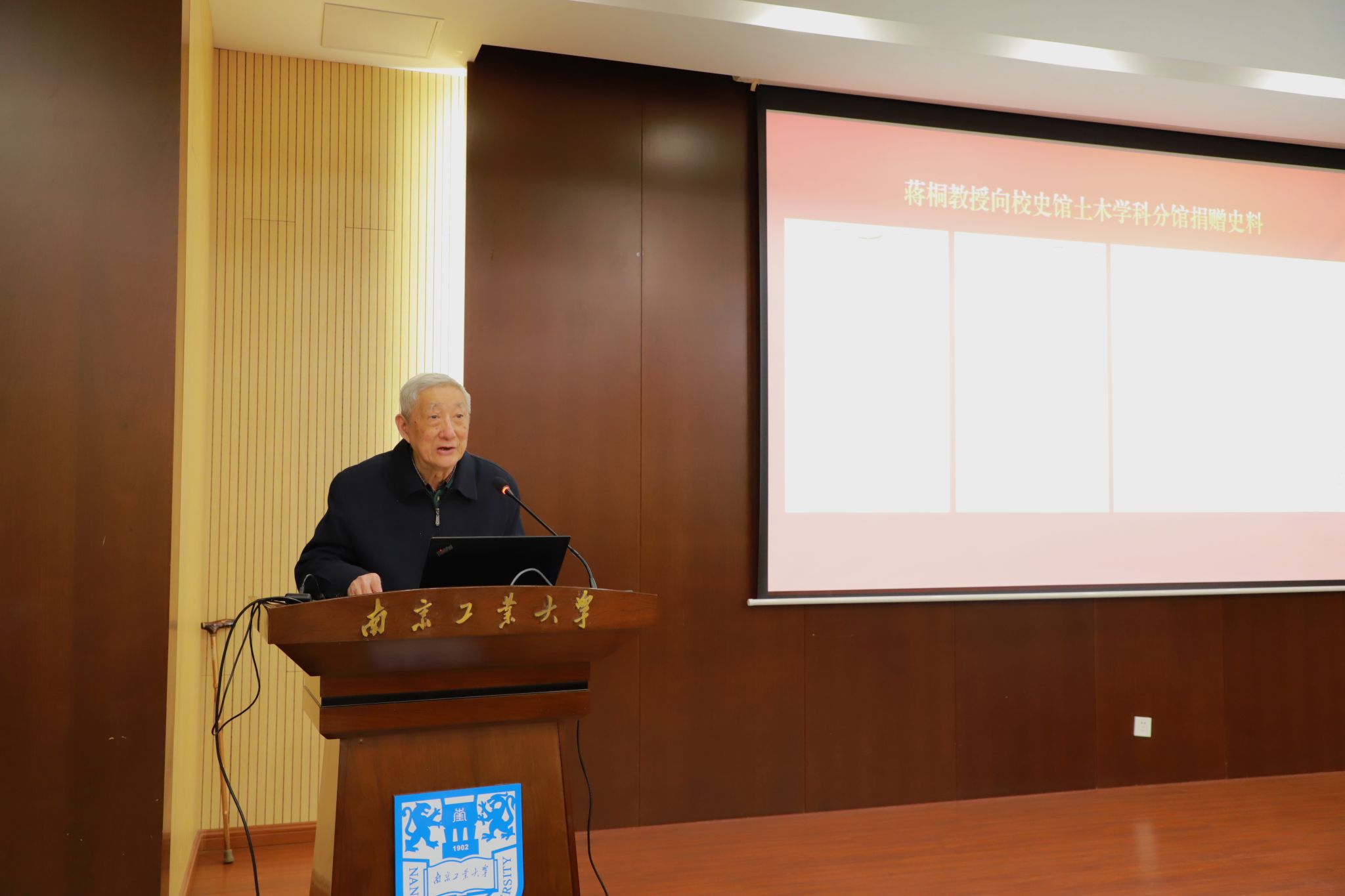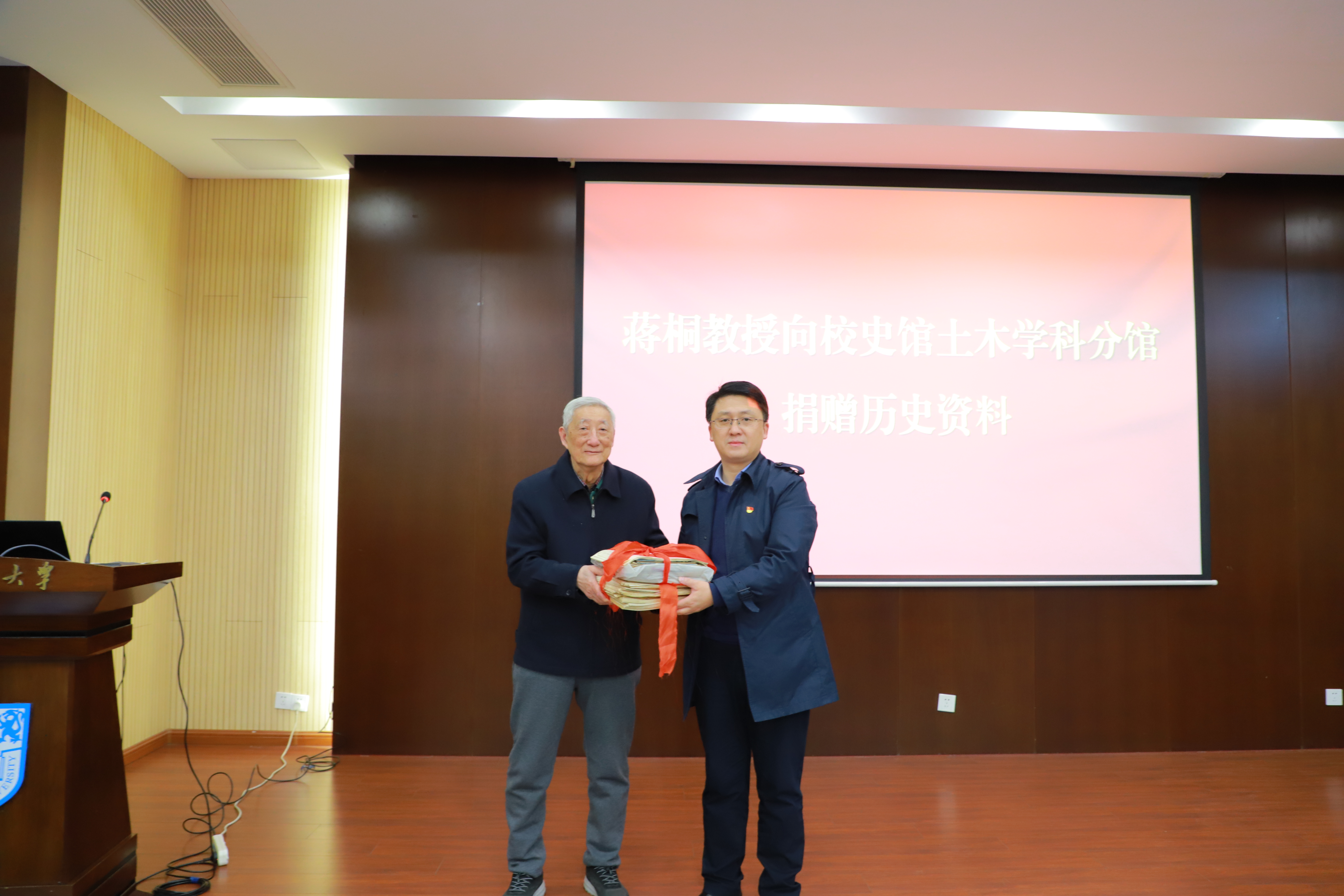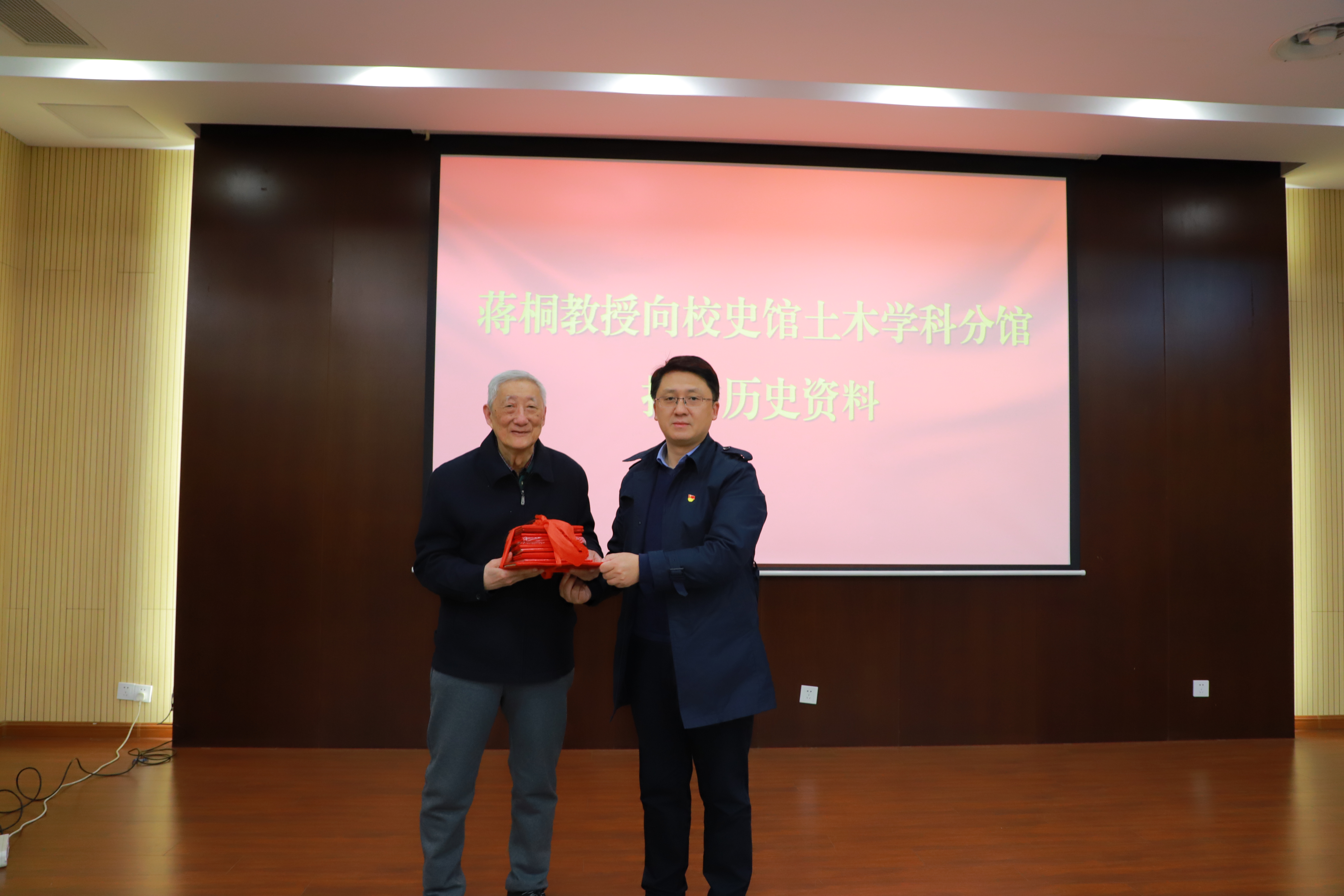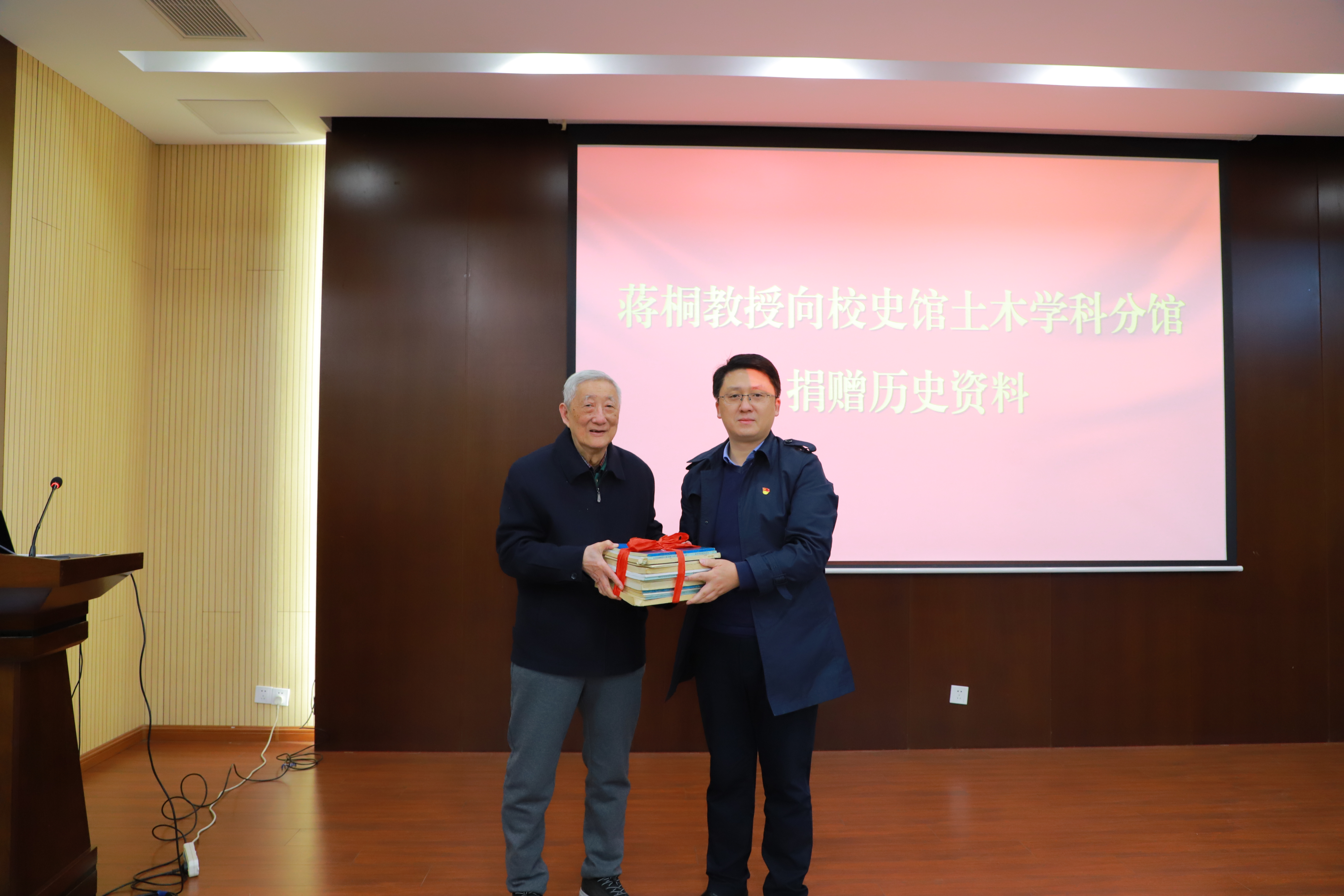 会议期间还举行了蒋桐教授向校史馆土木学科分馆捐赠史料仪式。蒋桐教授深情回顾了自己承担国家科研攻关项目及指导研究生开展科研工作、解决疑难问题的经历,勉励全体教师不忘初心,潜心育人,聚焦国家科研需求,刻苦攻关。