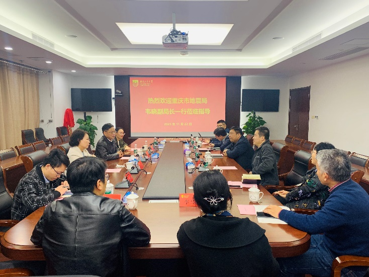 张涛书记对重庆市地震局的来访表示热烈的欢迎,并介绍了公司参会人员,同时感谢重庆市地震局长期以来对太阳集团tyc33455官网的关心和支持,希望双方能在城市防震减灾领域共聚合力、合谋新篇。韦晓副局长对公司的热情欢迎表示感谢,并介绍了重庆市地震局发展概况,以及承担国家公共安全领域的韧性城乡、巨灾防范等建设任务的情况。