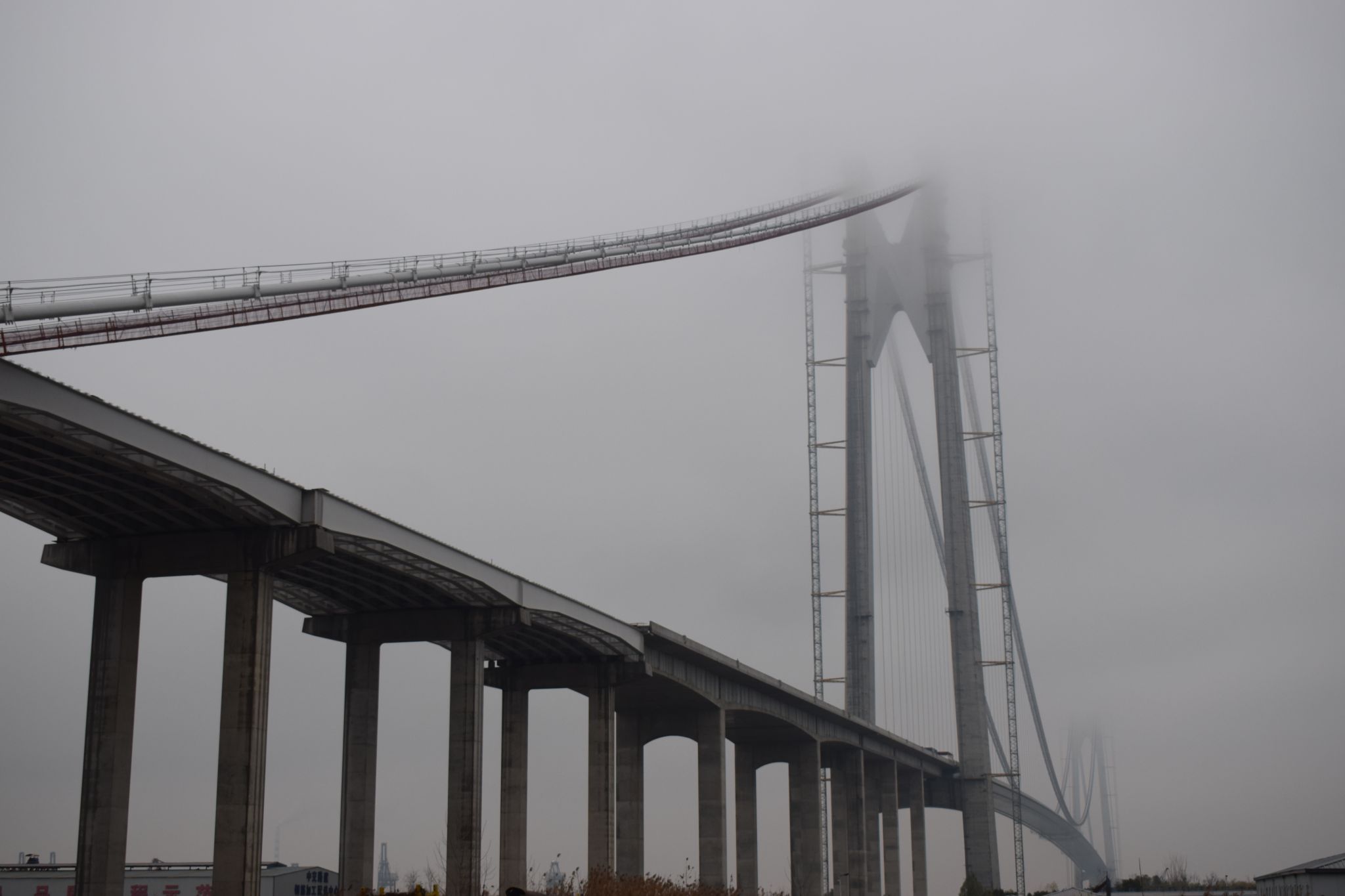 南京仙新路长江大桥位于南京八卦洲长江大桥和南京栖霞山长江大桥之间,是南京高快速路系统的重要组成部分,是主跨1760米,主塔高263.8米的双塔单跨悬索桥,该跨径在同类桥型中居于国内第一、世界第二。