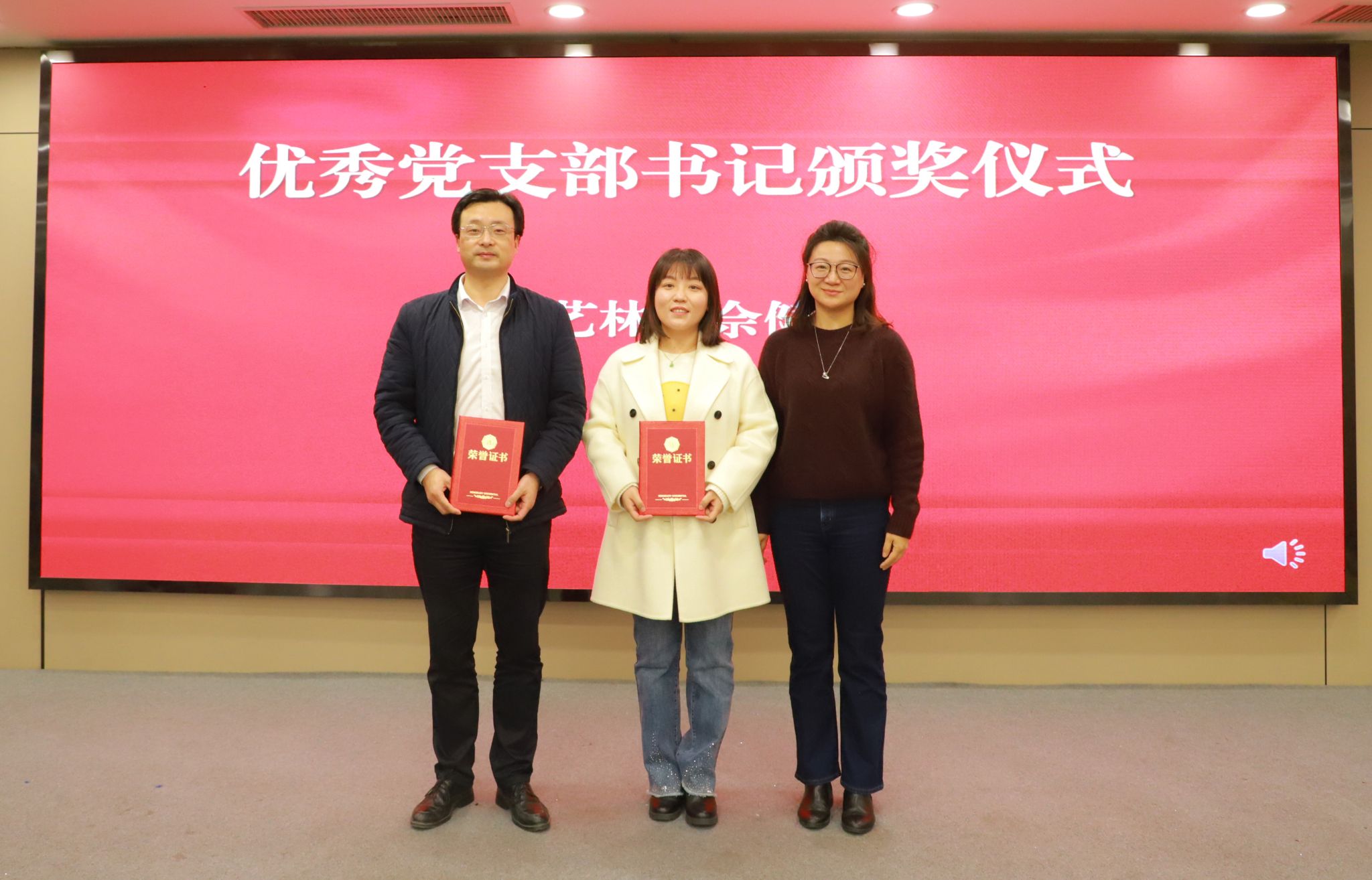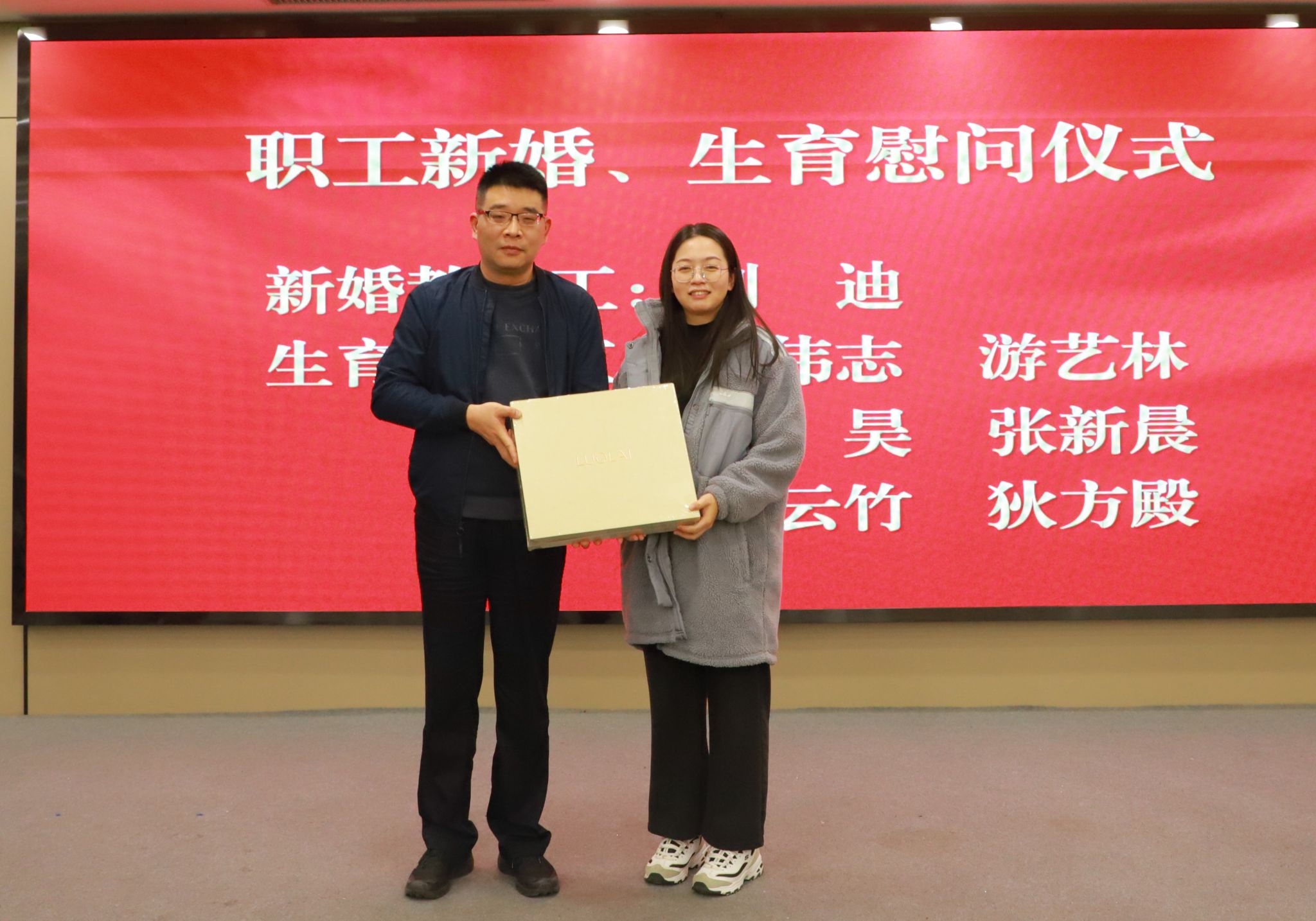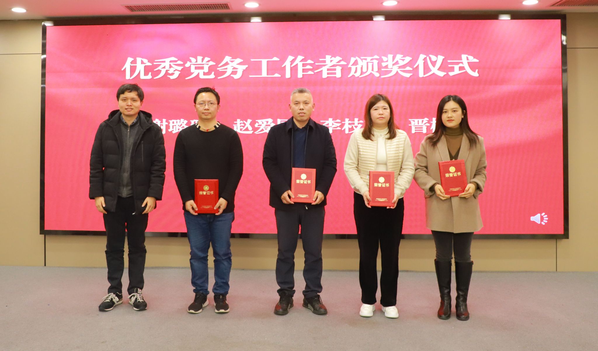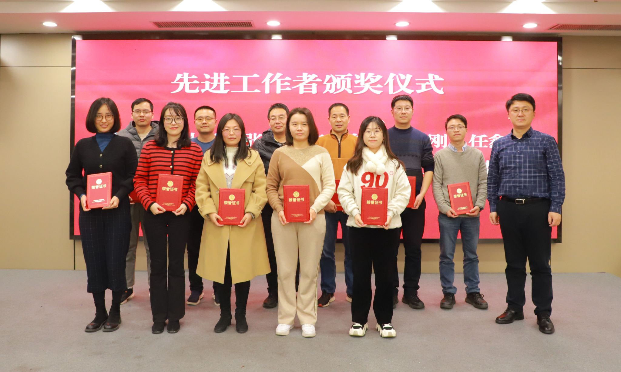 张涛书记宣读2023年度公司先进集体和个人表彰决定。王曙光处长为公司先进集体颁奖。研究生院副经理丁贤、公司领导分别为2023年度管理服务先锋、科研先锋、教学先锋、优秀党支部书记和优秀党务工作者、先进工作者、先进党支部和优秀共产党员颁奖。期间,公司还为2023年度新婚、生育教职工举行慰问仪式并颁发纪念品。