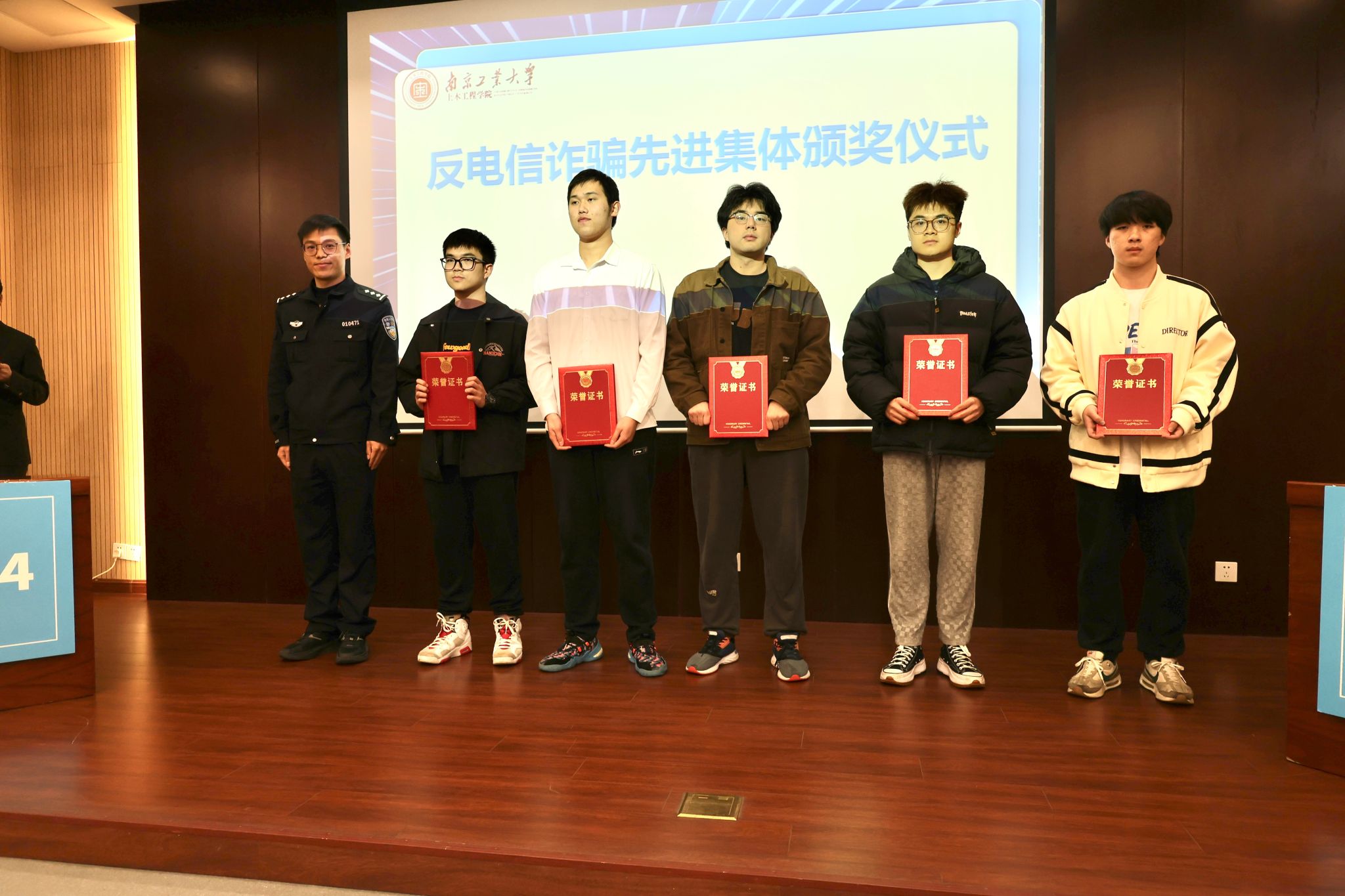 比赛开始前,徐东副部长宣读公司2023年度反电信诈骗先进集体表彰名单,张峰林警官为获奖集体颁奖,随后班级反诈宣传员代表发言,介绍班级反诈工作开展经验。竞赛环节共设必答题、抢答题、风险题和主观题四个环节。必答题环节,各参赛队伍稳定发挥,冷静作答;抢答题环节紧张激烈,展现了选手们果断敏锐的风采;风险题和主观题环节则比出了选手稳健的临场应变能力和扎实的反诈知识储备。现场还设置了有奖问答互动环节,观众们积极参与,赛场气氛热烈。经过激烈角逐,土木2306班获一等奖,张涛书记、徐东副部长和张峰林警官为所有获奖班级颁发荣誉证书。