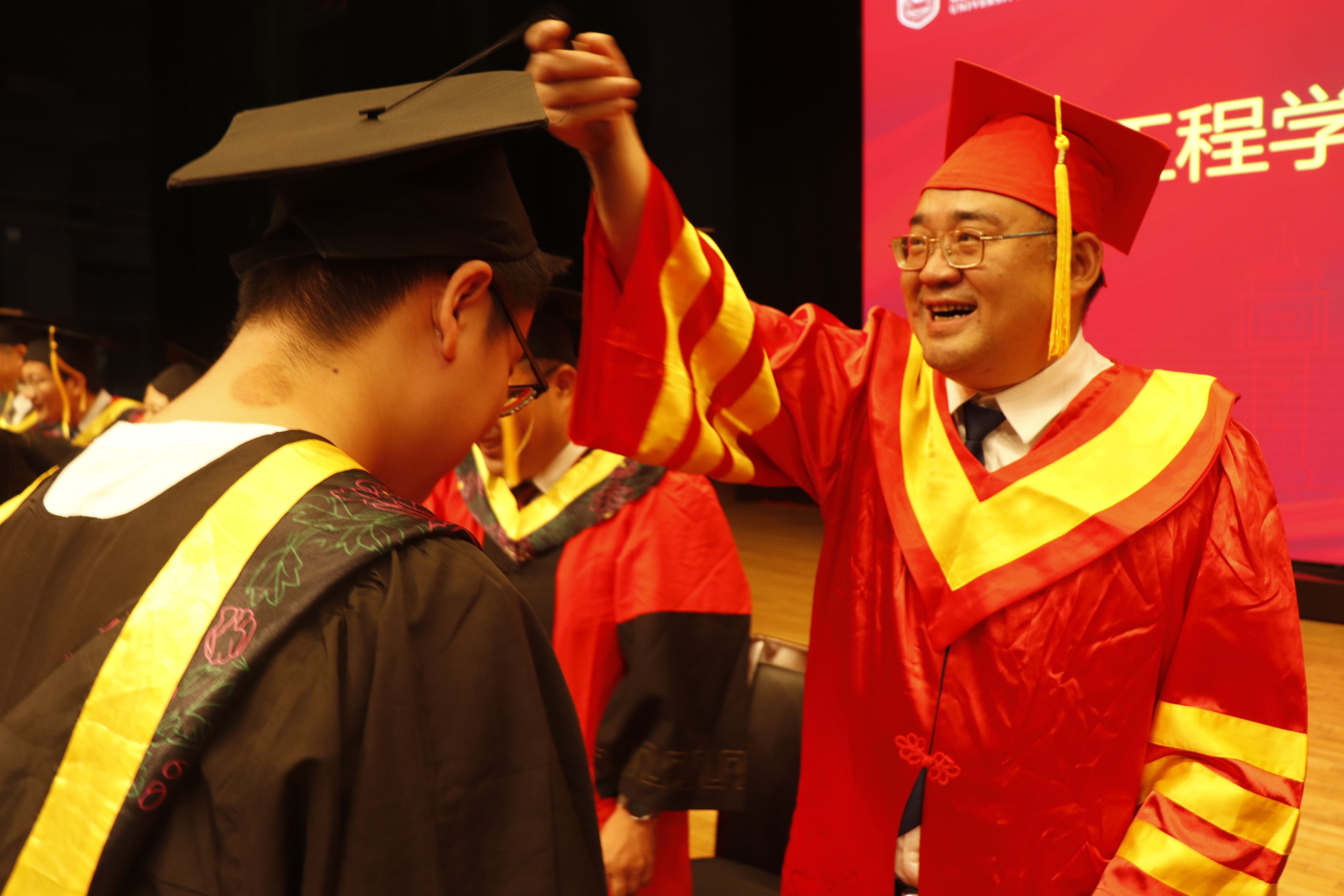 师长们为毕业生代表授予学位并拨穗