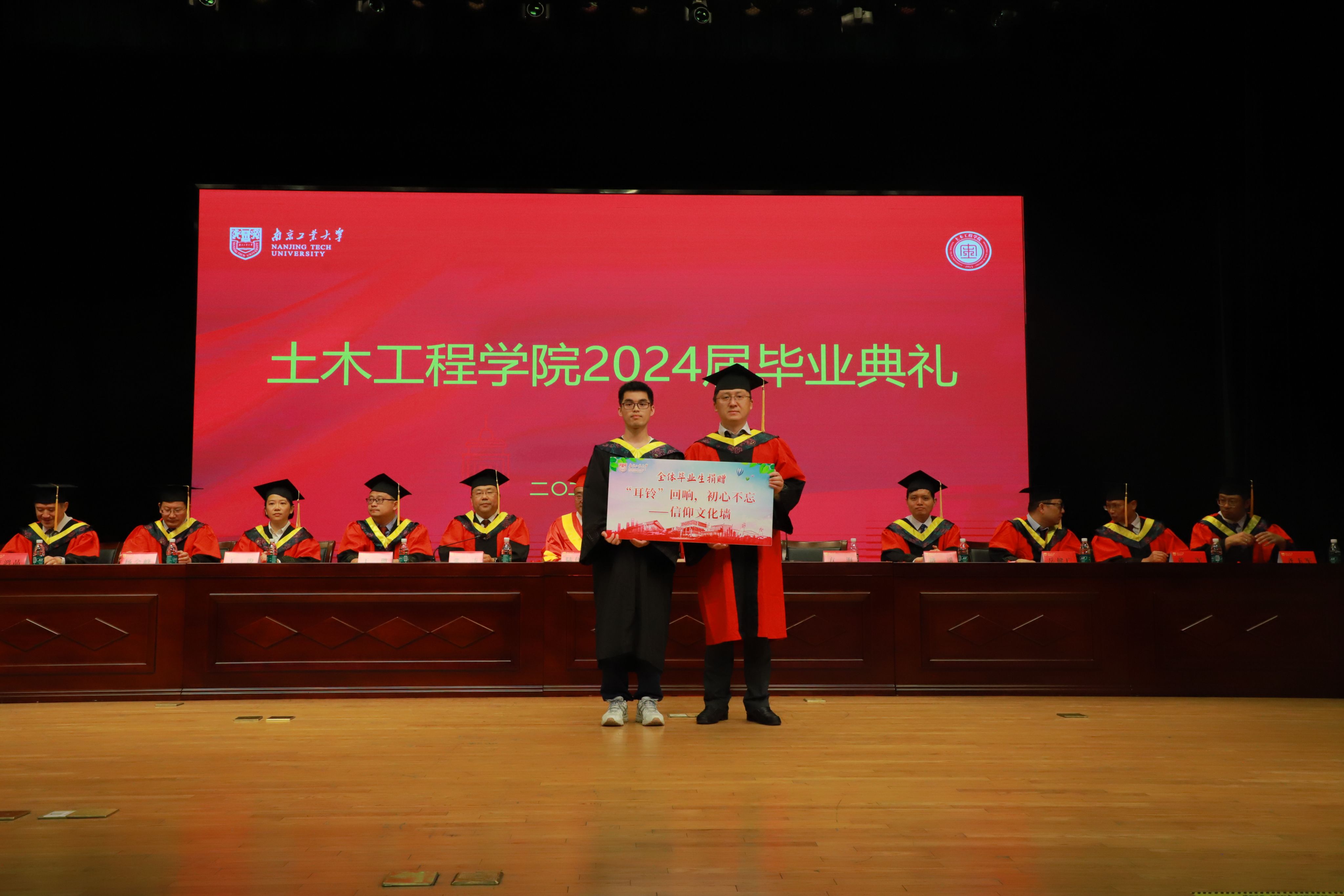 毕业典礼伊始,全场奏唱国歌。公司党委书记张涛宣读校优秀毕业生名单;经理方海宣读“中铁建工”就业工作专项奖学金表彰决定;本科毕业生代表土木2001班张子楠同学、毕业研究生代表土研2101班鲍赛同学分别发言,分享了自己在校期间的学习生活感悟,感谢公司、公司和师长的谆谆教诲。家长代表、土木2008姚天豫同学家长、南京市秦淮区投资促进局四级调研员姚俊红发言,表达了对南工大辛勤培养员工的感谢。教师代表方园老师在发言中表示,希望同学们牢记校训,努力求真求善求美。随后,公司向2024届毕业生代表赠送纪念戒指,2024届毕业生代表向公司捐赠“耳铃”回响,初心不忘——信仰文化墙,毕业生代表朗诵《到祖国最需要的地方去》。在欢快的音乐声中,在主席台就坐的师长们为毕业生代表授予学位并拨穗。