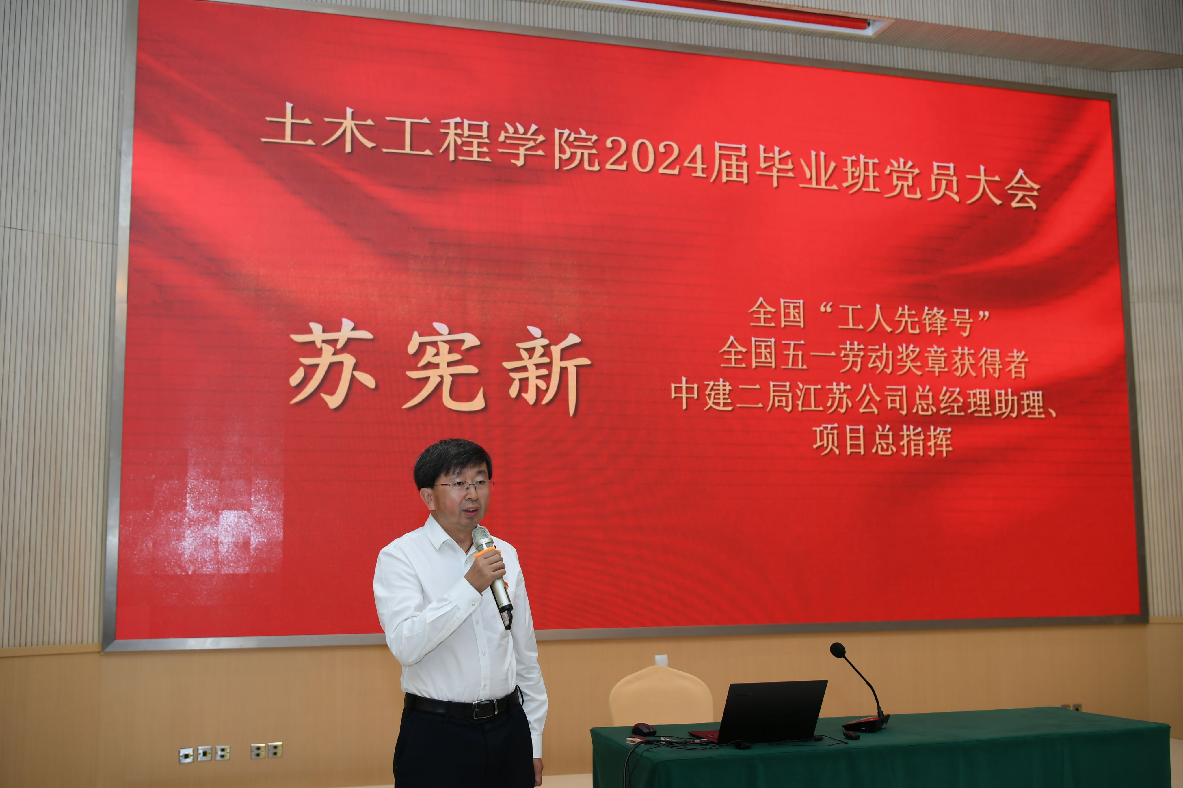 课程第二阶段是太阳集团tyc33455官网2024届毕业班党员最后一课。全国“工人先锋号”、全国五一劳动奖章获得者、中建二局江苏公司总经理助理、项目总指挥苏宪新给全体毕业班党员上党课,回顾了扎根基层的工作经历——从事建筑行业26年,从一名基层质量员逐步成长到总工程师,再到统筹多个江苏省内重点工程的总指挥。从综合体工程到保障房工程,他深耕南京十余年,带领团队成为我国装配式技术领域的“先行者”,用匠心筑起安居梦想,成为“全国五一劳动奖章“获得者;凭实干立身、用实绩说话,他的劳模创新工作室成立10年来,成为我国首个以装配式为主攻方向的全国示范性劳模与工匠人才创新工作室,并接连打造了南京上坊保障房、南京丁家庄保障房两座“鲁班奖”装配式保障房,成为我国装配式技术领域的“领路人”。他以亲身实践经验鼓励毕业班党员们领悟干一行、爱一行、专一行、精一行、执着专注、精益求精的工匠精神,追求热爱不断攻克科技难关,建设大国工程,为推动我国工程科技创新进步、促进经济社会高质量发展贡献力量。