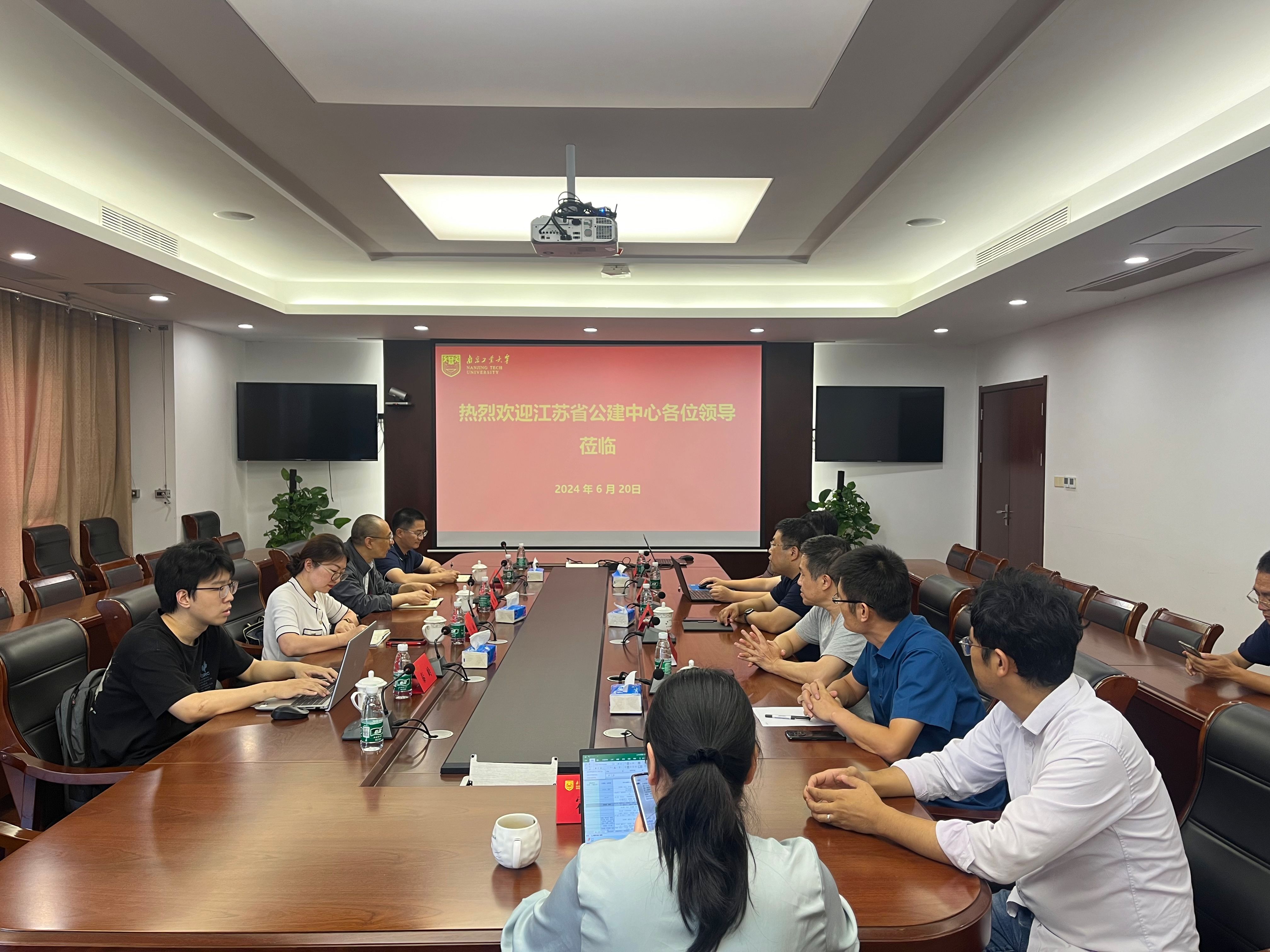 张涛书记对江苏省公共工程建设中心的来访表示热烈的欢迎,并介绍了公司参会人员,同时感谢江苏省公共工程建设中心长期以来对太阳集团tyc33455官网的关心和支持,希望双方能在以往合作的基础上共谋新篇。耿炜经理对公司的热情欢迎表示感谢,并介绍了江苏省公共工程建设中心发展概况,以及质量安全部承担科研项目对接、产教融合项目等任务的情况。