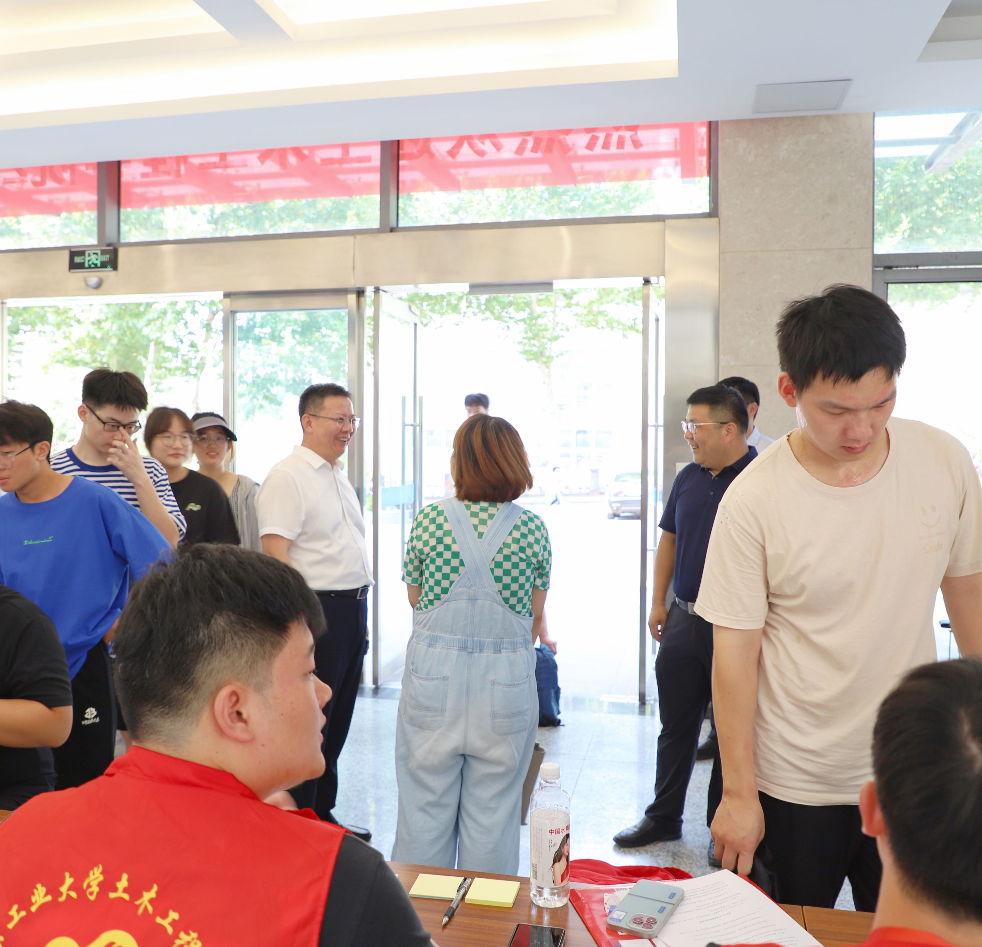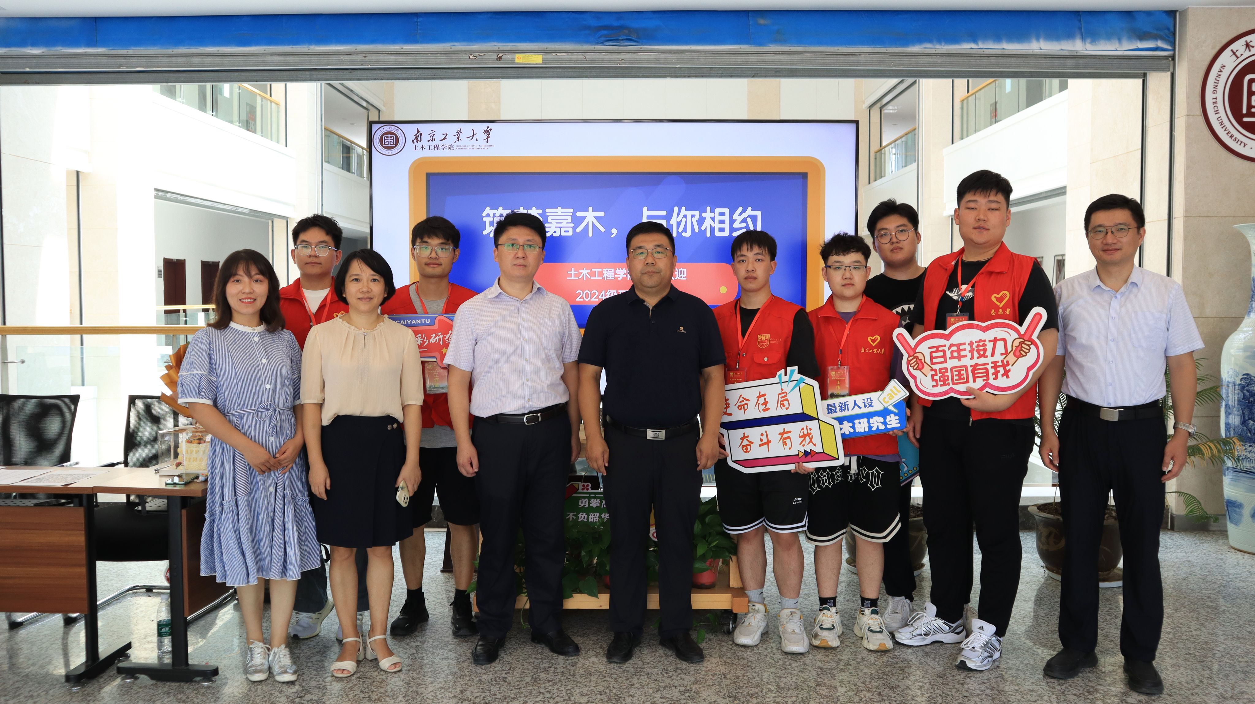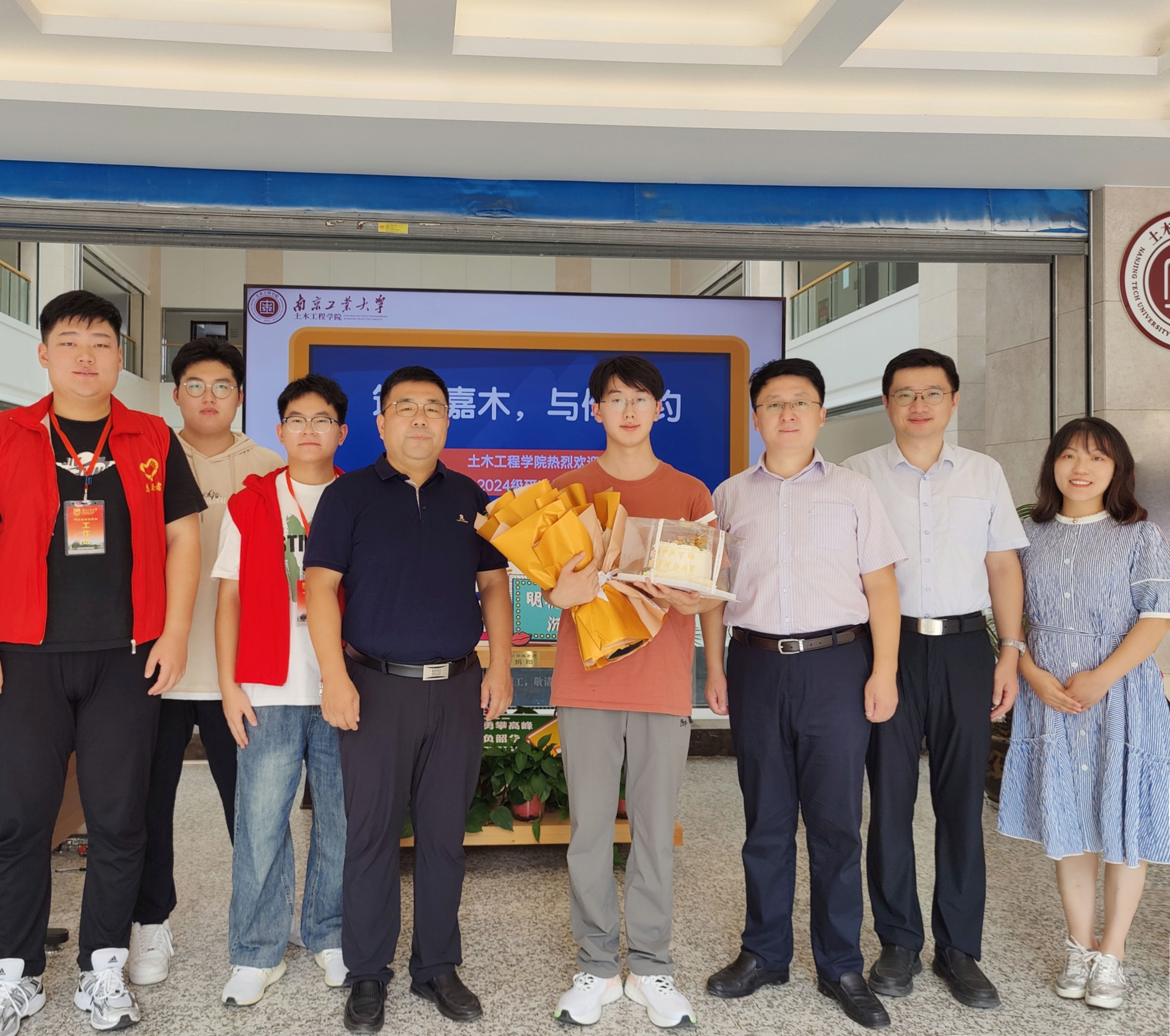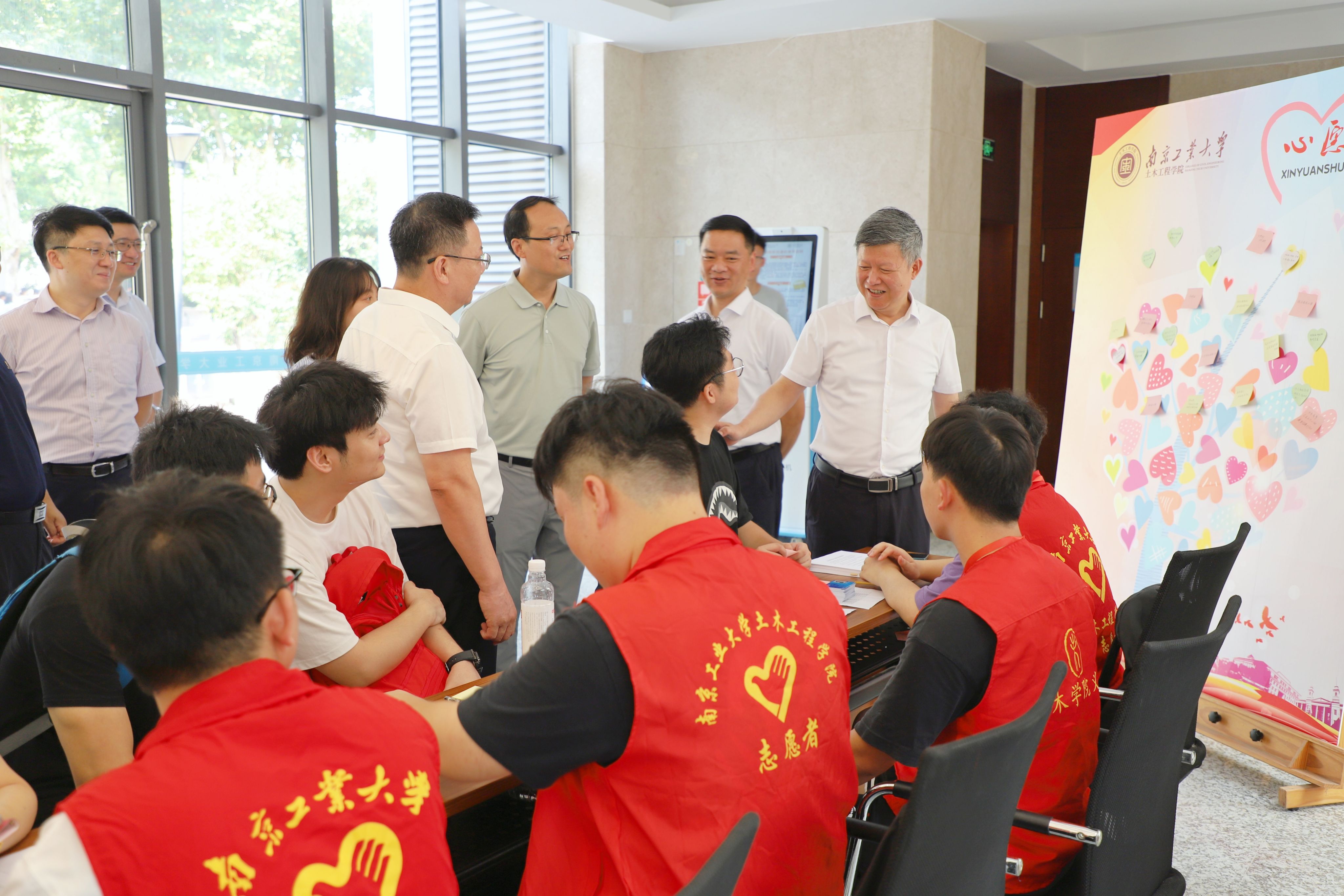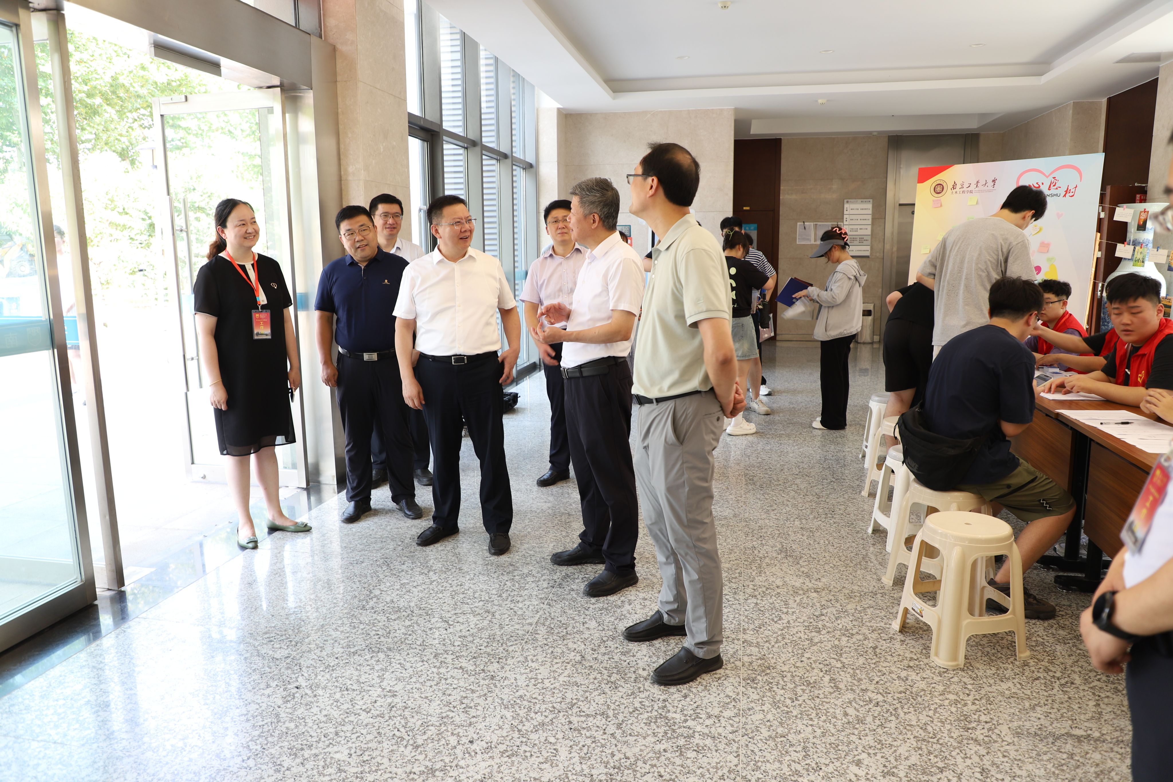公司党委书记芮鸿岩、董事长蒋军成、副董事长刘大卫、副董事长戴志晖、党委办公室、董事长办公室、研究生院领导亲临土木公司迎新现场,详细了解新生报到情况,慰问奋战在一线的迎新老师和志愿者,并勉励同学们要聚焦科技前沿,勇担时代使命,筑梦研途征程。