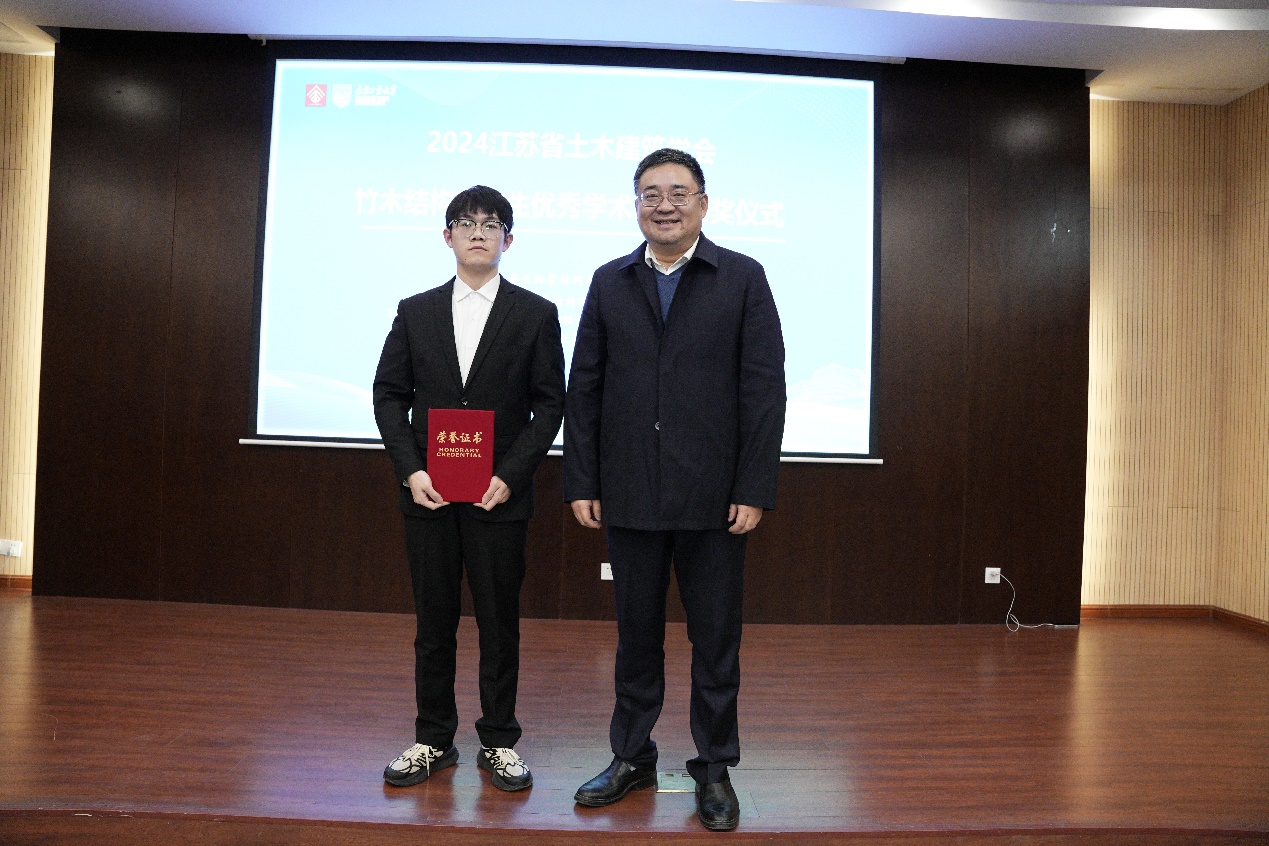 会议期间,还举行了2024年江苏省土木建筑学会竹木结构专业委员会年度工作会议,以及江苏省土木建筑学会竹木结构研究生优秀学术论文颁奖仪式。专委会年度工作会议由卢红标秘书长主持,竹木结构专业委员会秘书长岳孔汇报了竹木结构专业委员会2024年度工作进展,各参会代表汇报了各自工作情况,参会人员就竹木结构专业委员会的建设工作展开积极讨论,主任委员陆伟东作了工作总结。卢秘书长对专委会开展的工作表示认同和赞赏,并提出了期望和要求。