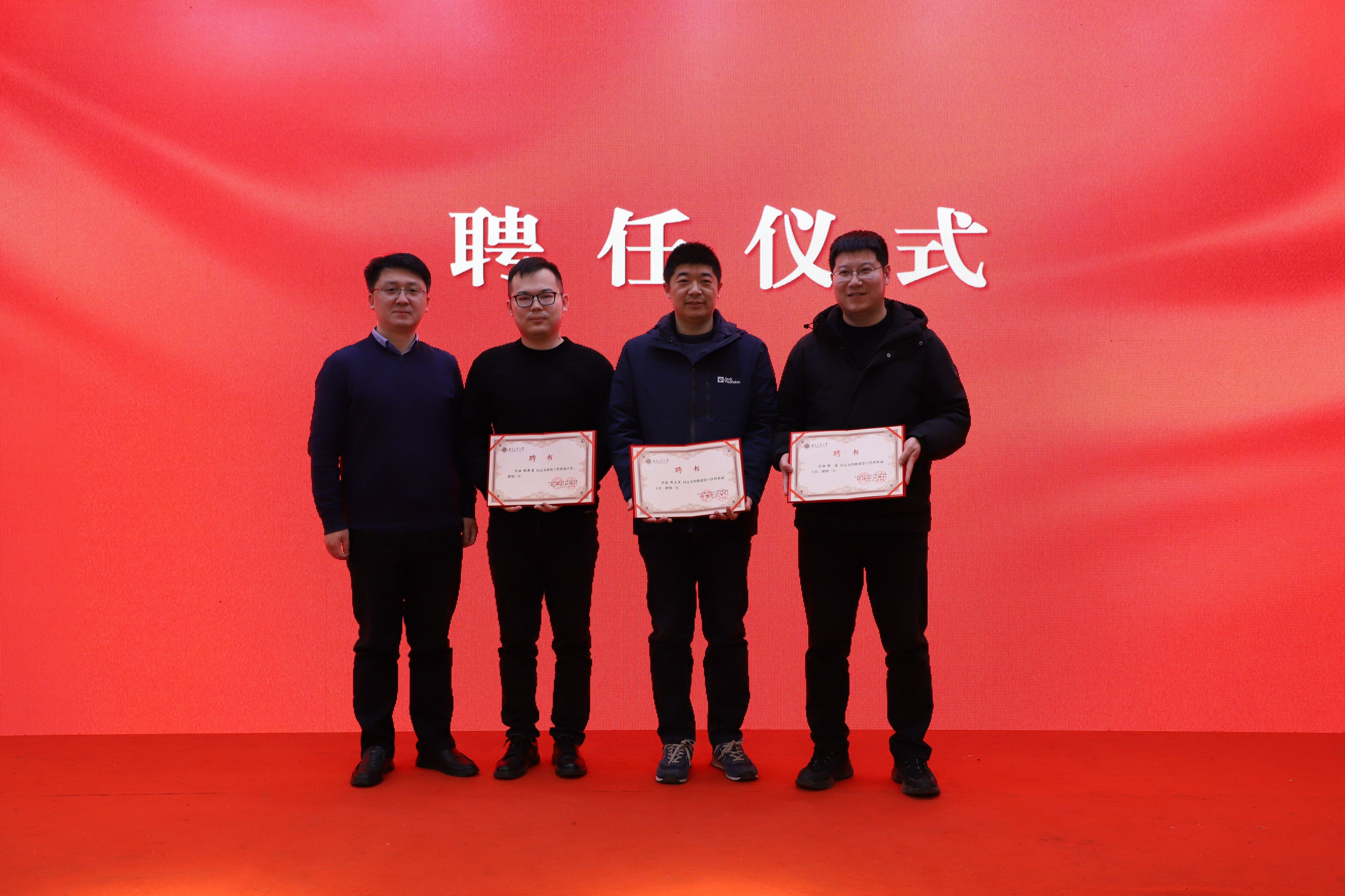 会议伊始,党委书记张涛宣读副系主任、实验中心副主任任命通知,经理方海为副主任颁发聘书。建筑工程系系主任徐金俊、防灾减灾工程系系主任蔡忠奎、桥梁与隧道工程系系主任李枝军、智能建造与管理系系主任齐玉军、力学与工程材料系系主任任鑫老师分别述职。公司副经理陈鑫宣读聘任11名班导师决定,党委副书记路遥为班导师颁发聘书。
