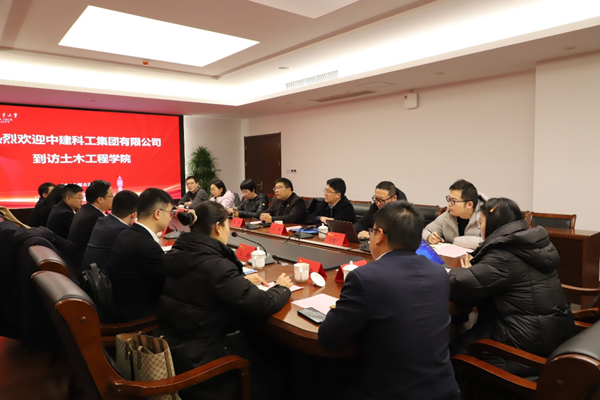 张涛书记首先对中建科工集团董事长成能名一行的到来表示热烈欢迎和衷心感谢。随后,双方介绍了参会人员情况。华东大区科技管理部经理常明媛详细介绍了中建科工自主研发的创新产品——智慧教室。教务处副处长李丽娟就智慧教室建设与中建科工进行了深入讨论与交流。方海经理介绍了FRP材料在防撞设施、桥梁工程和海洋光伏等研究成果。力学与材料系支部书记赵爱国教授、副系主任方园副教授、建筑工程系副系主任张新晨副教授、郑宇宙副教授、吴鹏副教授、祝曼副教授等依次汇报了复合材料在土木工程、海洋工程等领域的最新研究成果。双方就共同感兴趣的课题与合作领域展开了详尽的探讨,并强调后续将深入对接产学研合作项目,在产学研深度融合、人才联合培养以及平台建设等方面进一步加强合作,推动更多合作成果落地应用,为建筑工程行业的全过程绿色低碳发展贡献力量。