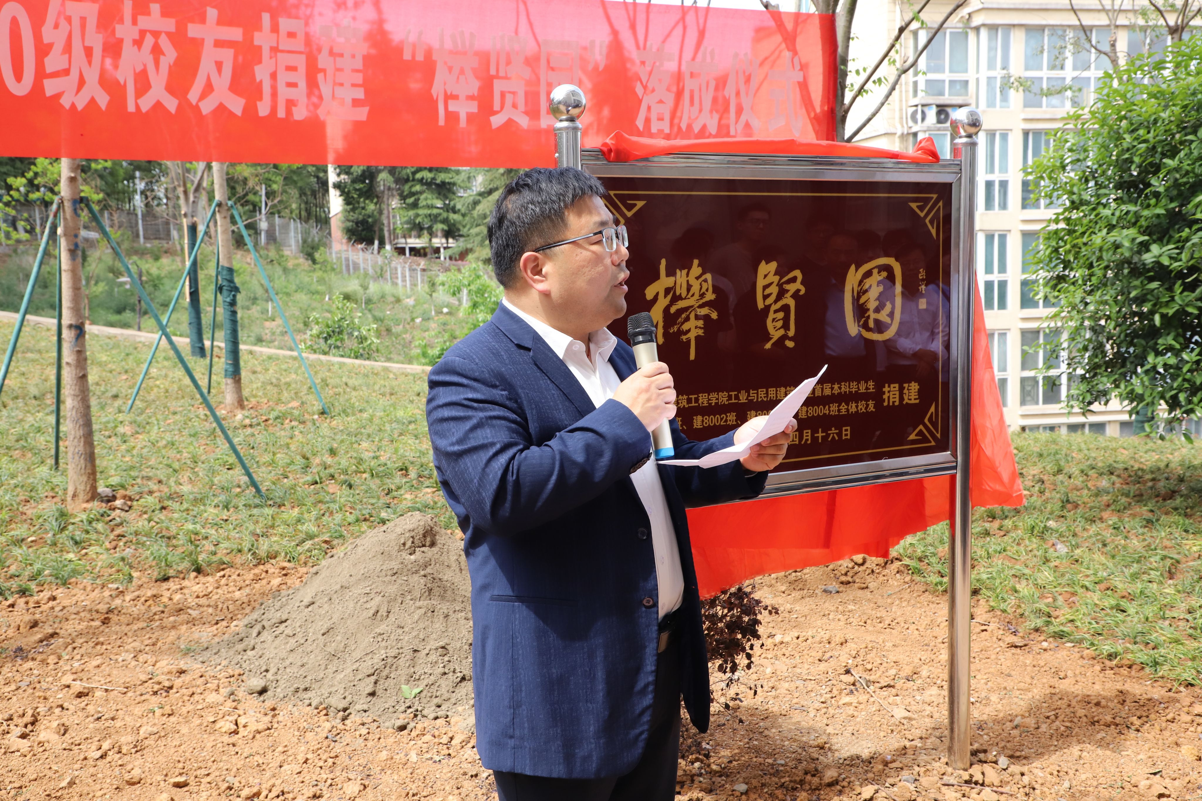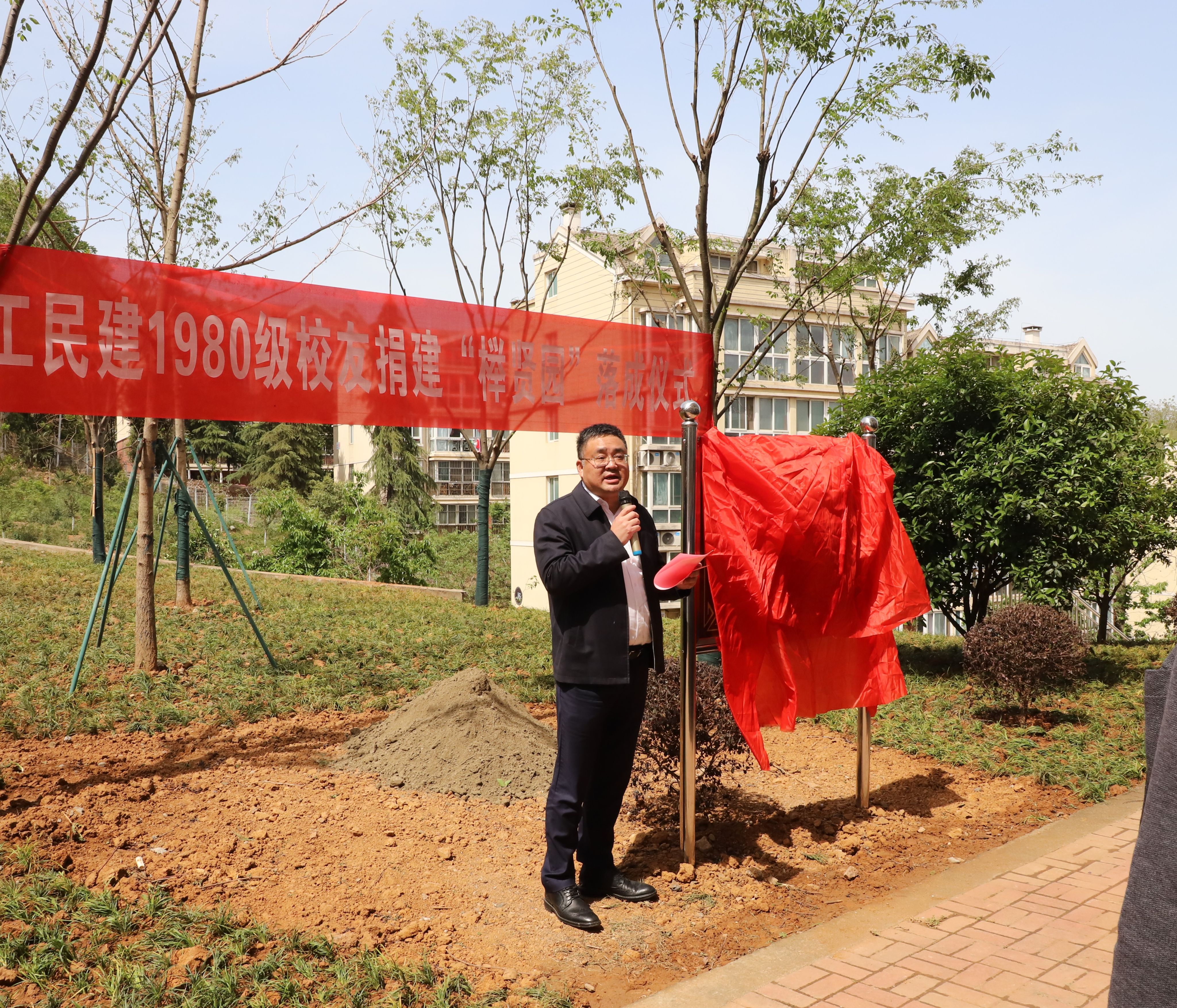 公司党委书记张涛介绍了筹建“榉贤园”的过程,向原南京建筑工程公司工业与民用建筑专业首届本科生1980级员工们慷慨捐赠的榉树和银杏树表示感谢。他表示,此次员工们捐建“榉贤园”落成仪式是员工铭恩、桃李反哺的见证,希望未来校企同心,携手共进,共创辉煌。