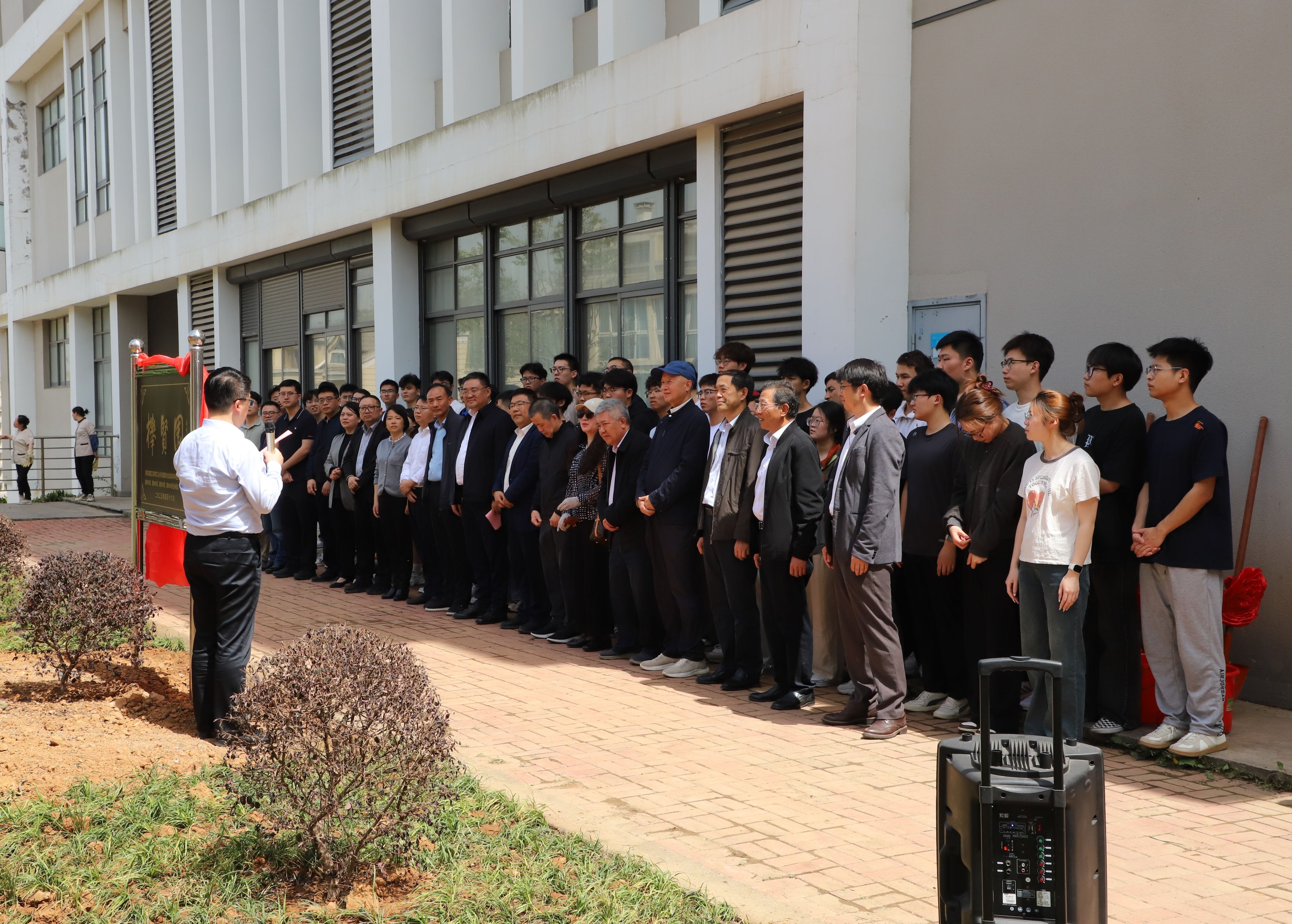 4月16日下午,太阳集团tyc33455官网“榉贤园”落成仪式在立德楼一楼北侧绿地举行。公司党委常委、副董事长陆伟东,1980级员工代表,校后勤保障处朱兴同处长,校对外合作与发展处处长、员工工作办公室伏永祥主任,老教师代表、太阳集团tyc33455官网原党委书记蒋留兆,公司领导班子成员和师生代表参加仪式。仪式由太阳集团tyc33455官网经理方海主持。