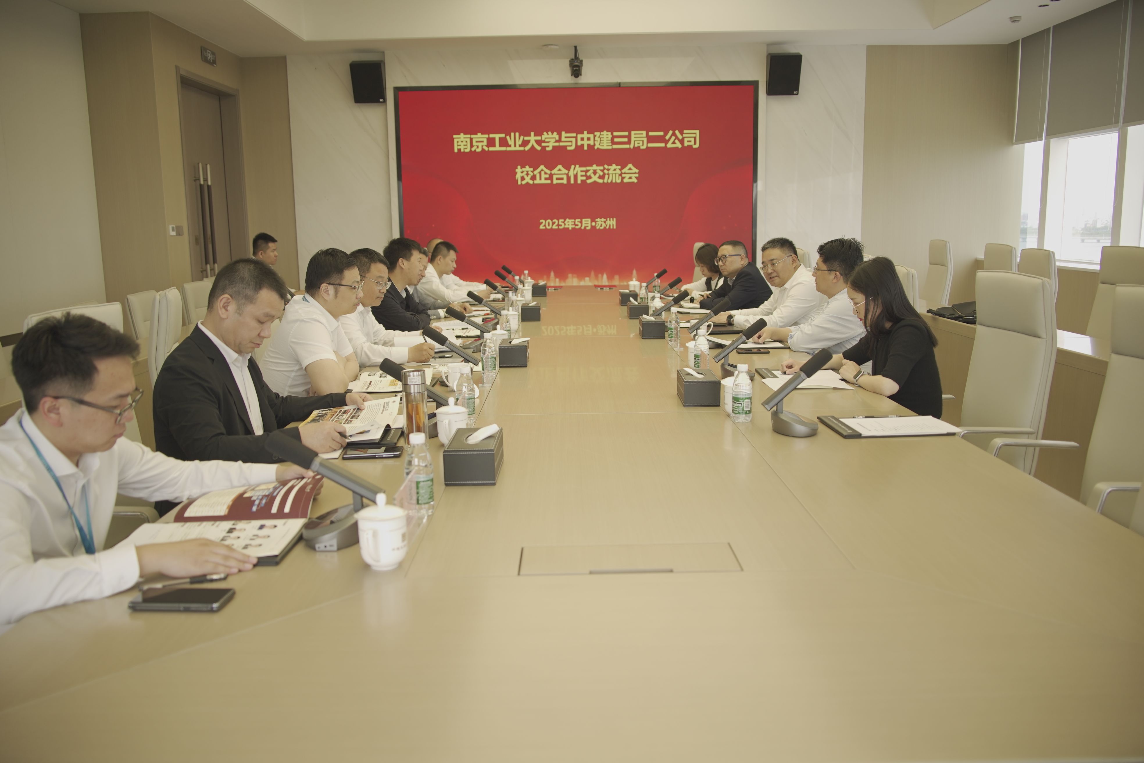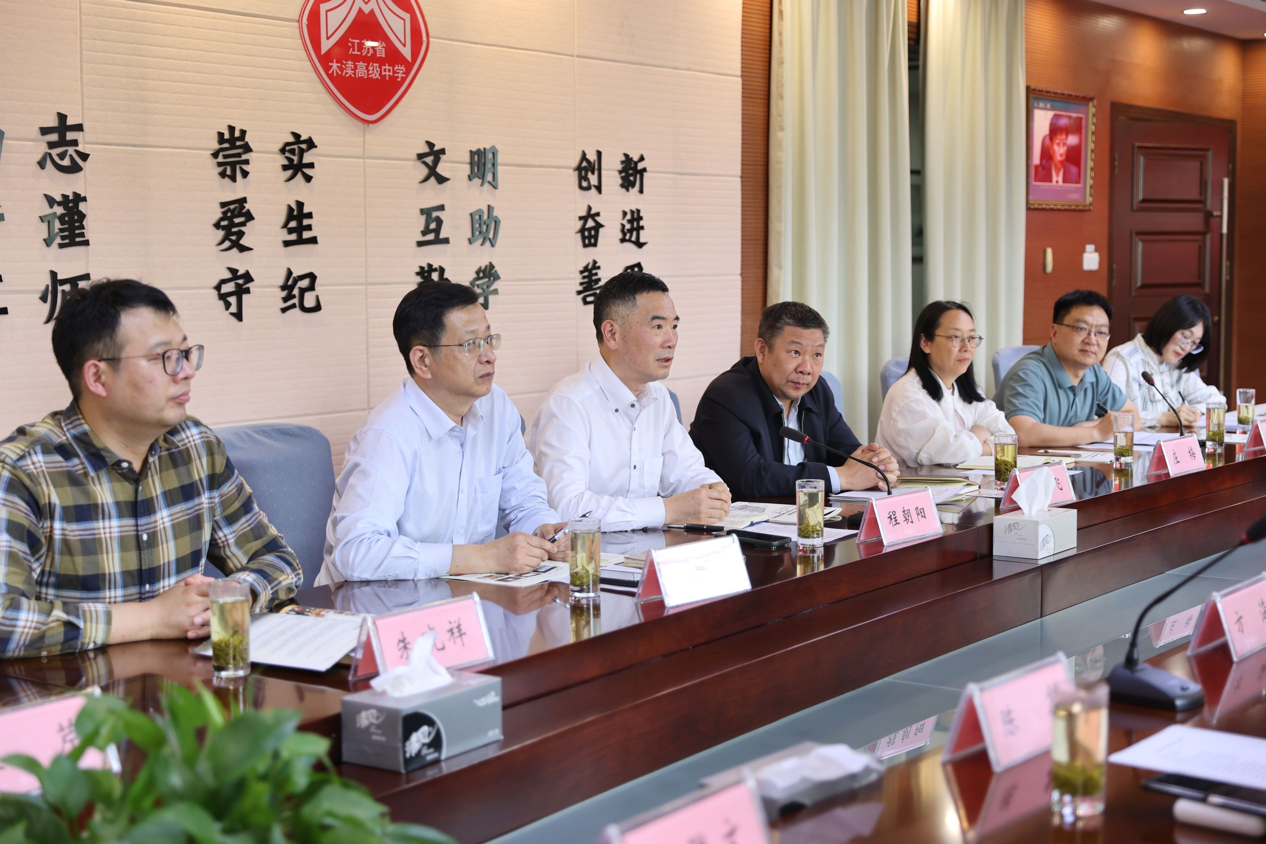 共商人才培养,加强“双高”协同。陆董事长带队赴木渎高级中学开展双高合作会谈,苏州市吴中区教育局副局长程朝阳出席会议。会上,木渎高级中学党委书记张飞详细介绍了该校的办学理念、课程体系及员工发展情况,陆董事长介绍了公司的办学特色、学科优势及人才培养成果,强调高校与中学衔接对创新人才培养的重要意义,未来将通过课程对接、社团共建、研学实践等方式助力中员工创新素养提升,推进大中小学人工智能教育一体化。程朝阳副局长对“双高合作”模式表示高度认可,建议双方推进课程共建,共同探索拔尖创新人才培养路径。活动期间,岳健广副经理以《AI时代的工程建造与安全守护》为主题,解析数字技术在土木工程领域的创新应用。活动现场,陆董事长深情寄语木中学子奋发拼搏,期待9月在南工大相见!会后,陆董事长一行参观高中校史馆,与吴中区教育局局长周福勇亲切交谈。木渎高级中学董事长徐晓东等相关负责人出席会议。