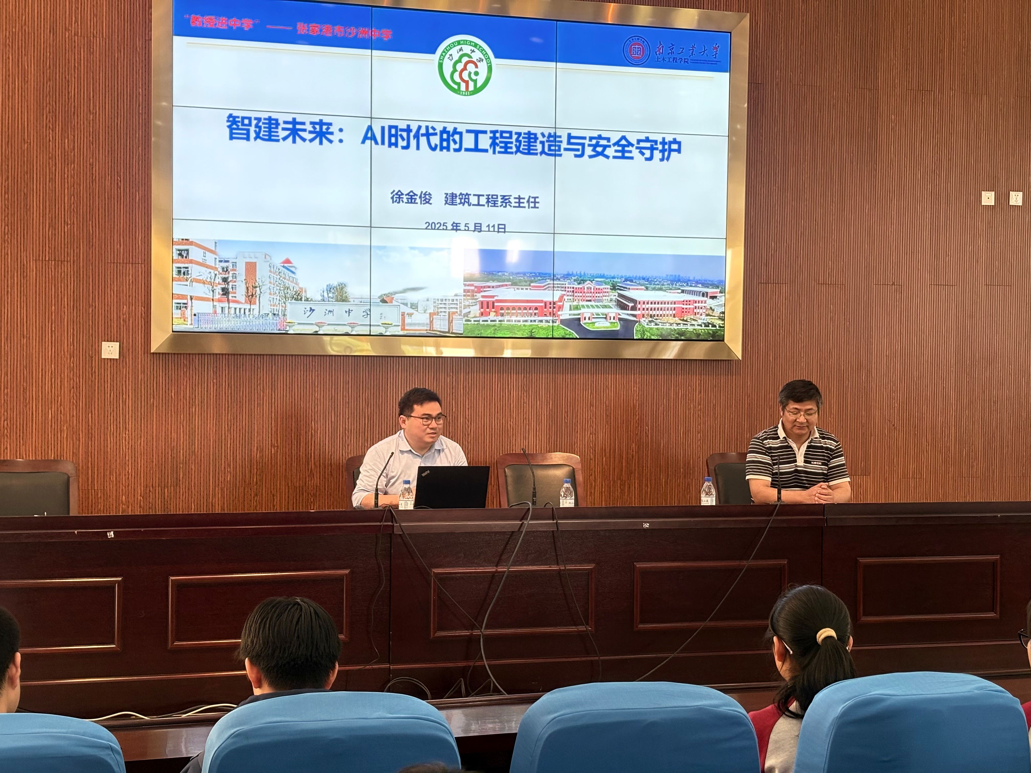 5月11日,太阳集团tyc33455官网赴张家港沙洲中学开展“教授进中学”活动。太阳集团tyc33455官网建筑工程系党支部书记、系主任徐金俊老师、辅导员谢雅文、沙洲中学200余名高中生参加本次活动。