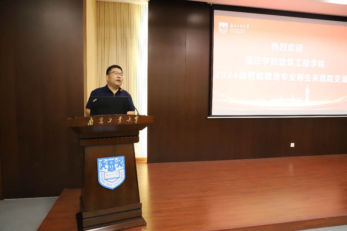 张涛书记致欢迎辞,回顾两校合作渊源,强调智能建造是行业未来方向,呼吁双方携手提升专业建设与实践育人能力,共探江苏特色人才培养新路径。王俊副经理介绍了公司发展、学科特色、科研成果及研究生招生政策和培养成效,诚挚邀请宿迁学子报考南工大。