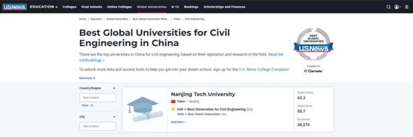 近日,《U.S. News 2025-2026年世界大学学科排名》正式发布。公司土木工程学科跻身全球前50(排49)(详情见https://www.usnews.com/education/best-global-universities/china/civil-engineering),充分彰显了学科强劲的国际竞争力和学术声誉。