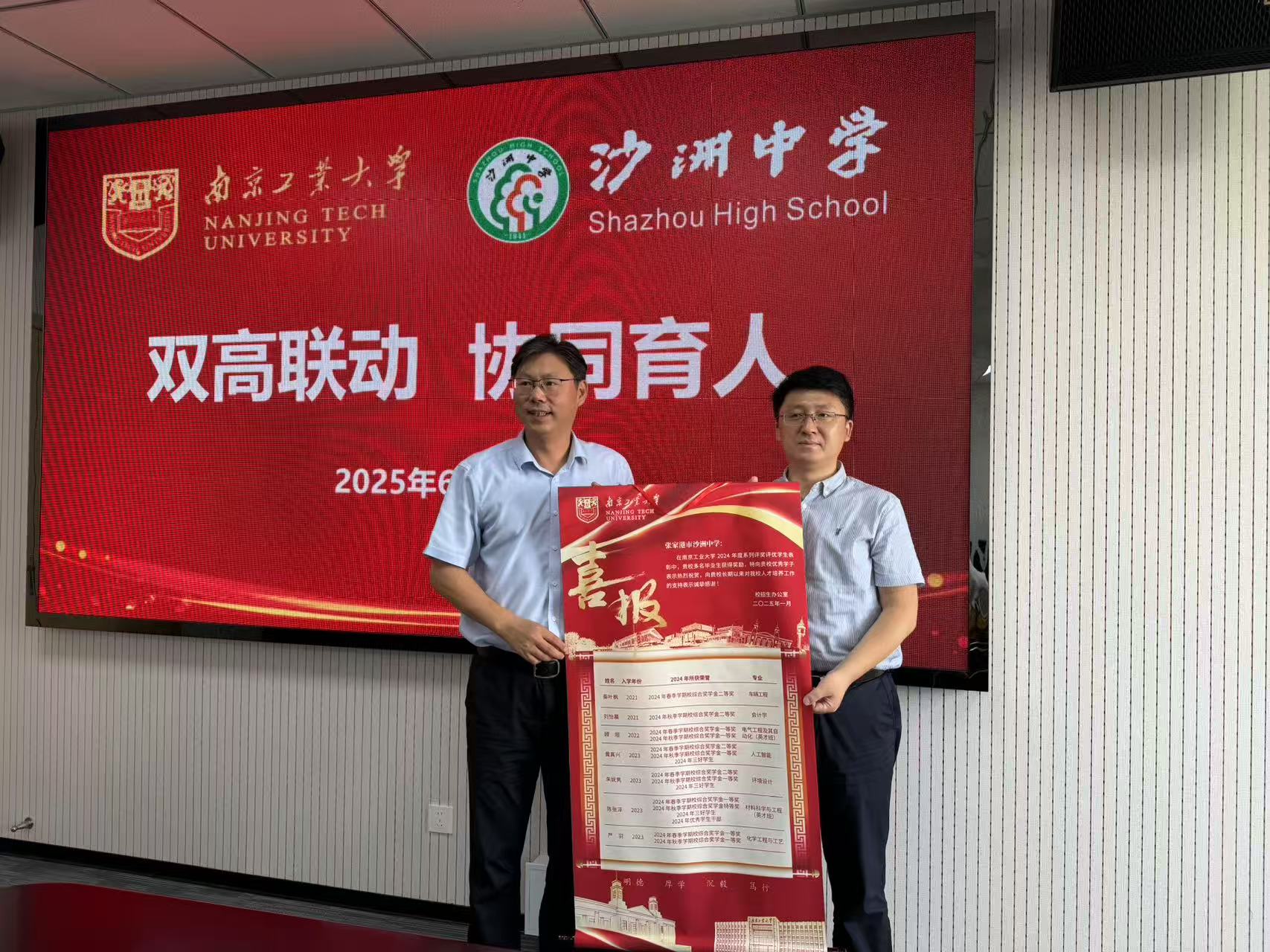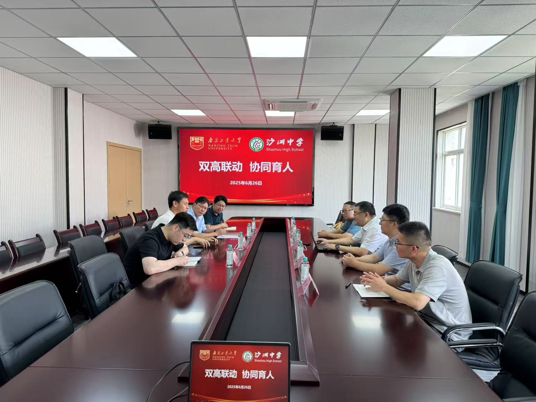在张家港市,陆伟东副董事长一行先后走访梁丰高级中学与沙洲中学。在梁丰中学,双方共同参观了校史馆与图书馆,围绕办学历史、高考成果及招生政策展开深入交流。陆伟东重点介绍了南工大专业特色与人才培养优势,张家港市教育局副局长朱治国详细解读了两所中学的高考情况。梁丰中学党委副书记谈雅琴,副董事长周汉东出席座谈。沙洲中学座谈会上,公司党总支书记丁向荣表示未来加强两校合作,共同培养优秀人才。此外,陆伟东一行还赴张家港保税区,参观了公司“全国重点实验室张家港产业基地”,与市政府党组成员、市科技镇长团团长姜辉,保税区党工委委员、纪检监察工委书记陆定峰以及区科技人才局局长龚锦乾等就公司“国家级现代产业公司”建设达成合作共识,进一步推动了校地人才联合培养。