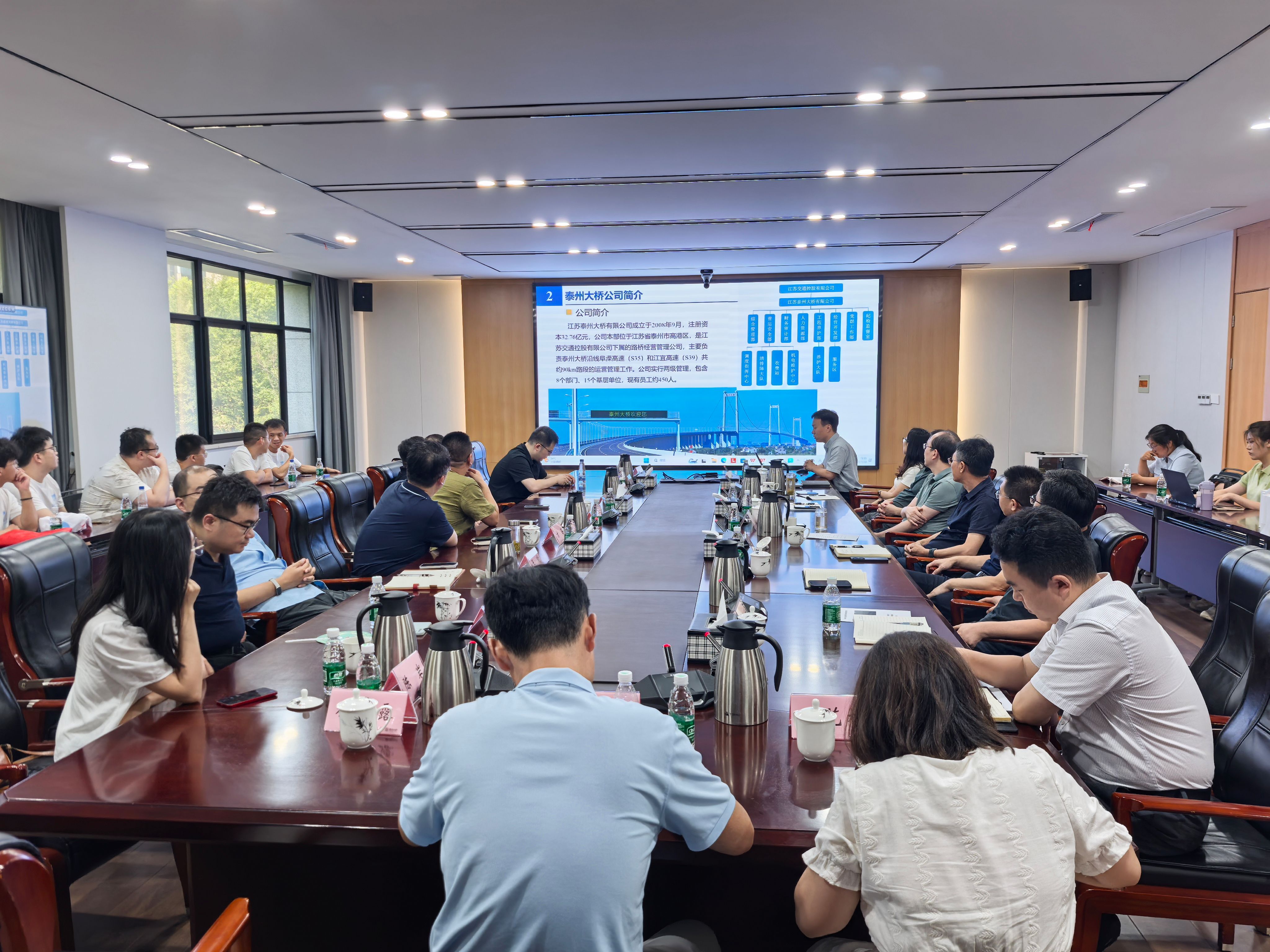 7月23日,在校泰兴产业公司和研究生院的指导下,土木工程公司赴泰兴开展“桥安智守”博士团暑期科技实践服务活动。校国有资产管理处处长秦卫明、土木公司经理方海带领土木、城建、数理公司12名教师以及土木公司12名硕博士生先后前往泰州市交通产业集团、江苏泰州大桥公司、江苏龙河消防科技公司、常泰长江大桥项目部、泰兴产业公司等单位开展实地调研与技术交流。泰州市交通产业集团党委副书记、总经理陈新猛,江苏泰州大桥公司党委书记、董事长徐泽敏,泰兴产业公司办公室主任吴晓亮等相关单位领导班子、技术总工参加活动。