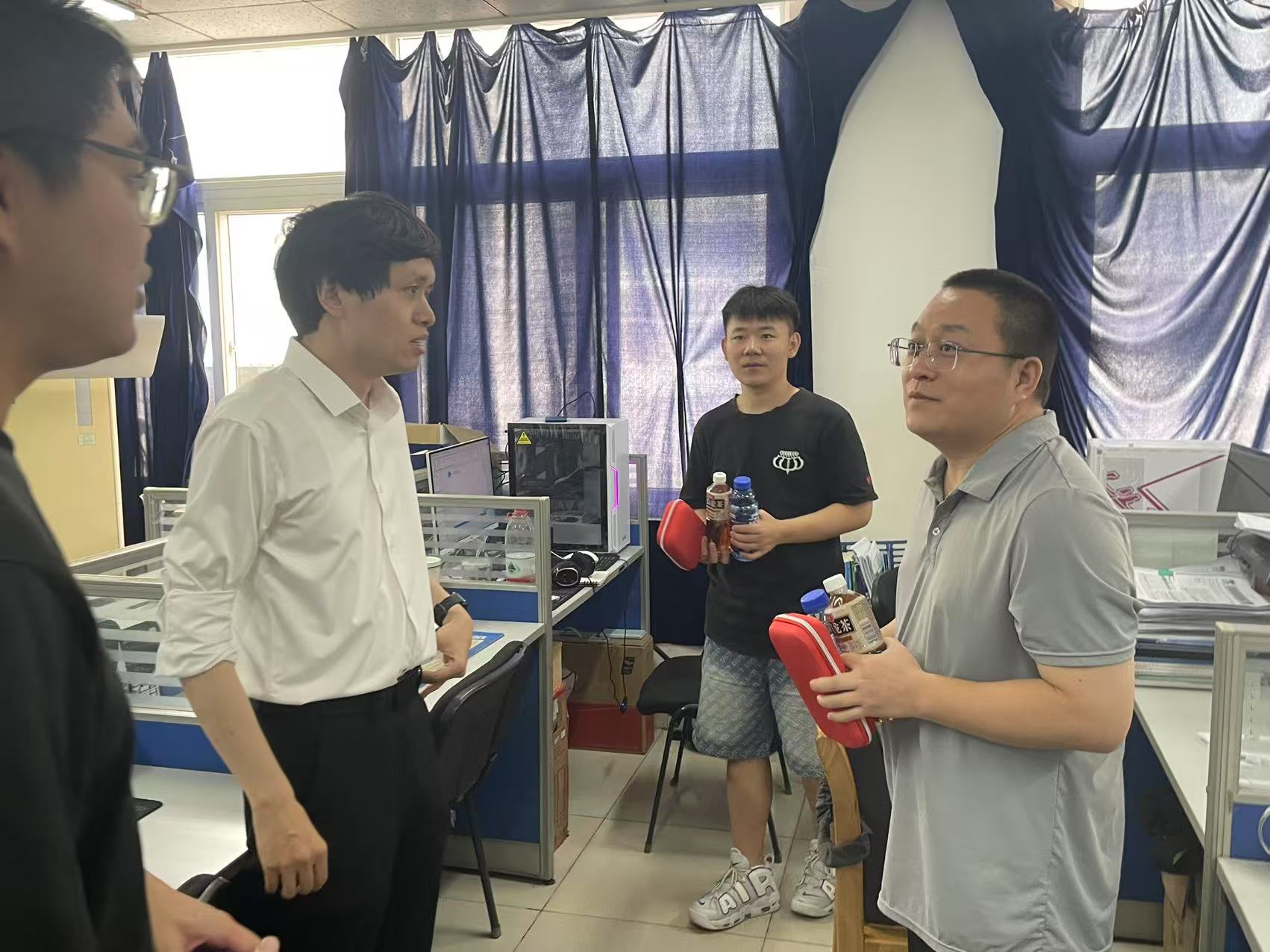 为全面了解暑期留校员工的学习生活情况,保障员工学术科研、考研复习等工作有序开展,8月9日,公司党委副书记路遥,辅导员张昊、姜小雨、李晓,深入地坤楼研究生工作室、考研自习教室及员工宿舍看望慰问留校员工,转达公司对留校员工的关心问候,并代表公司为留校员工送上防暑降温物资包。