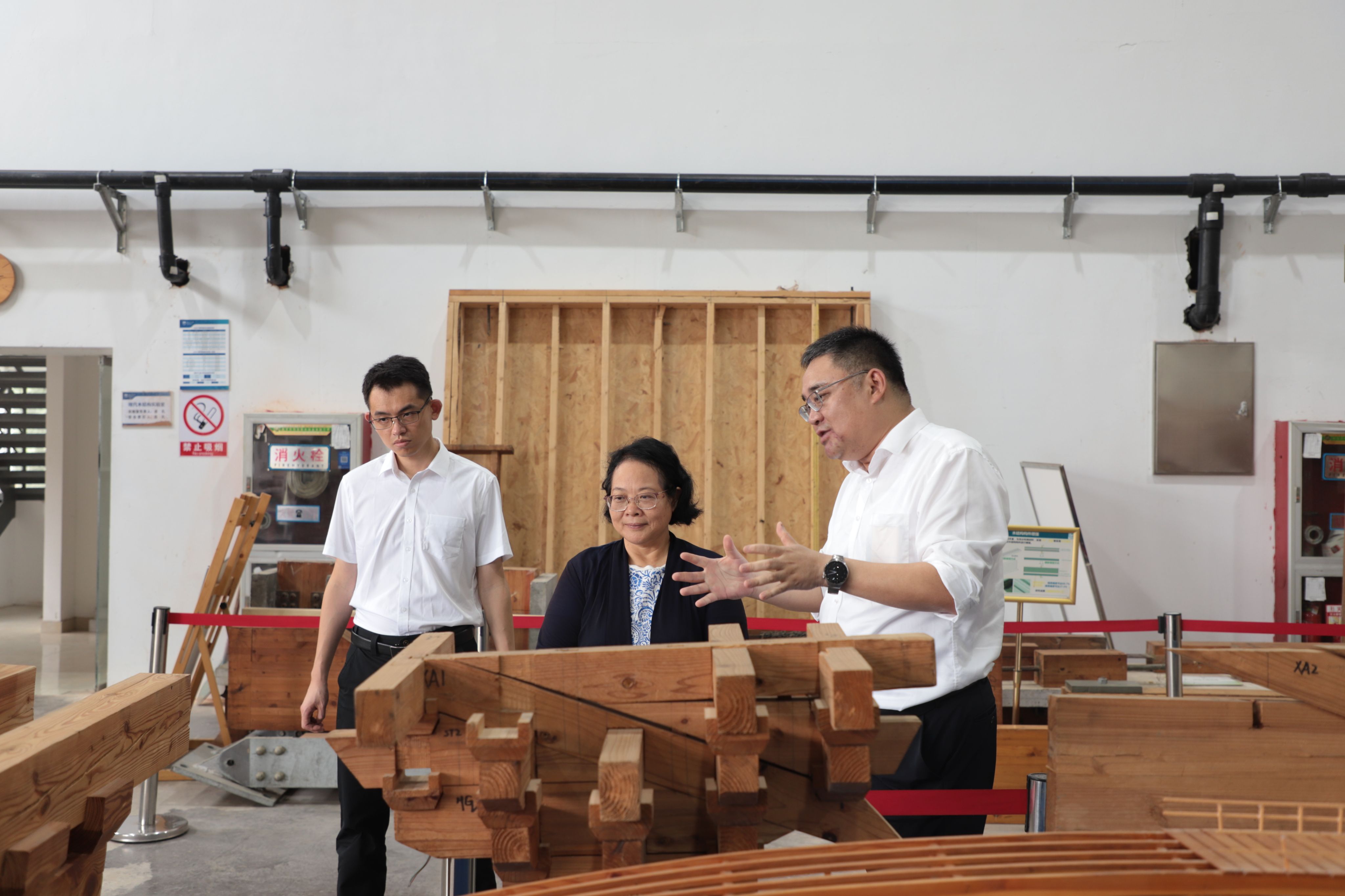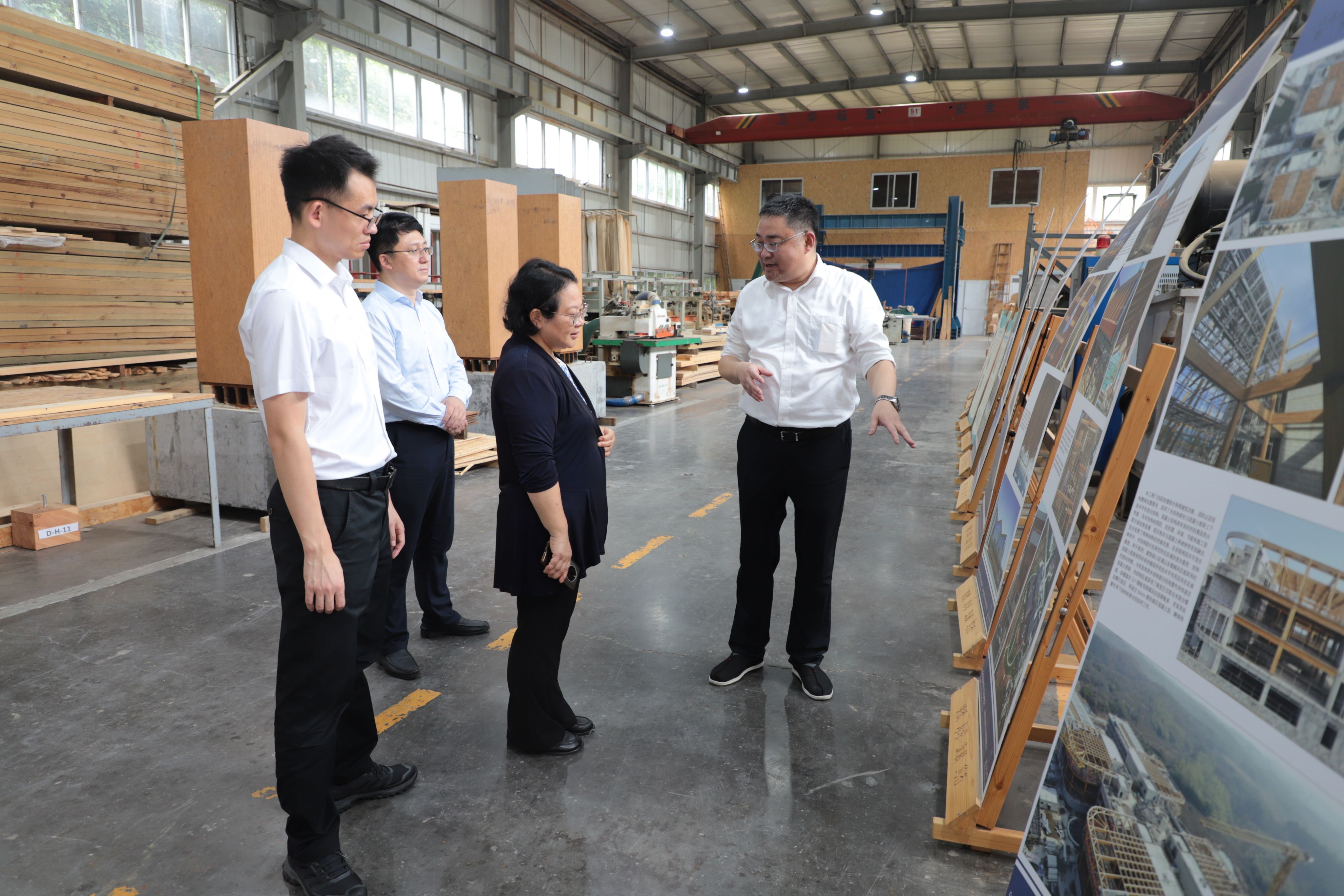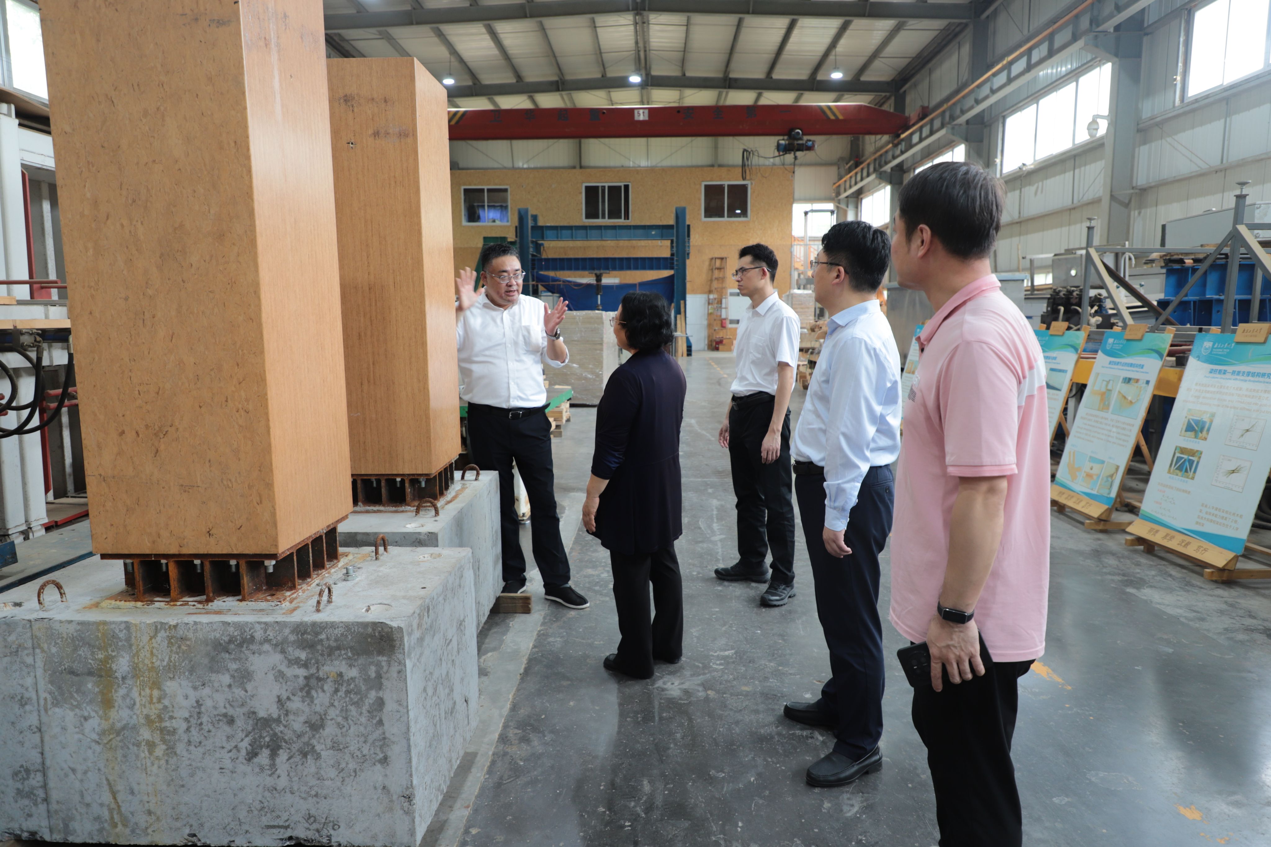 在副董事长陆伟东、经理方海的陪同下,陈新司长一行参观了太阳集团tyc33455官网现代木结构实验室、复合材料结构实验室、结构综合实验室等。
