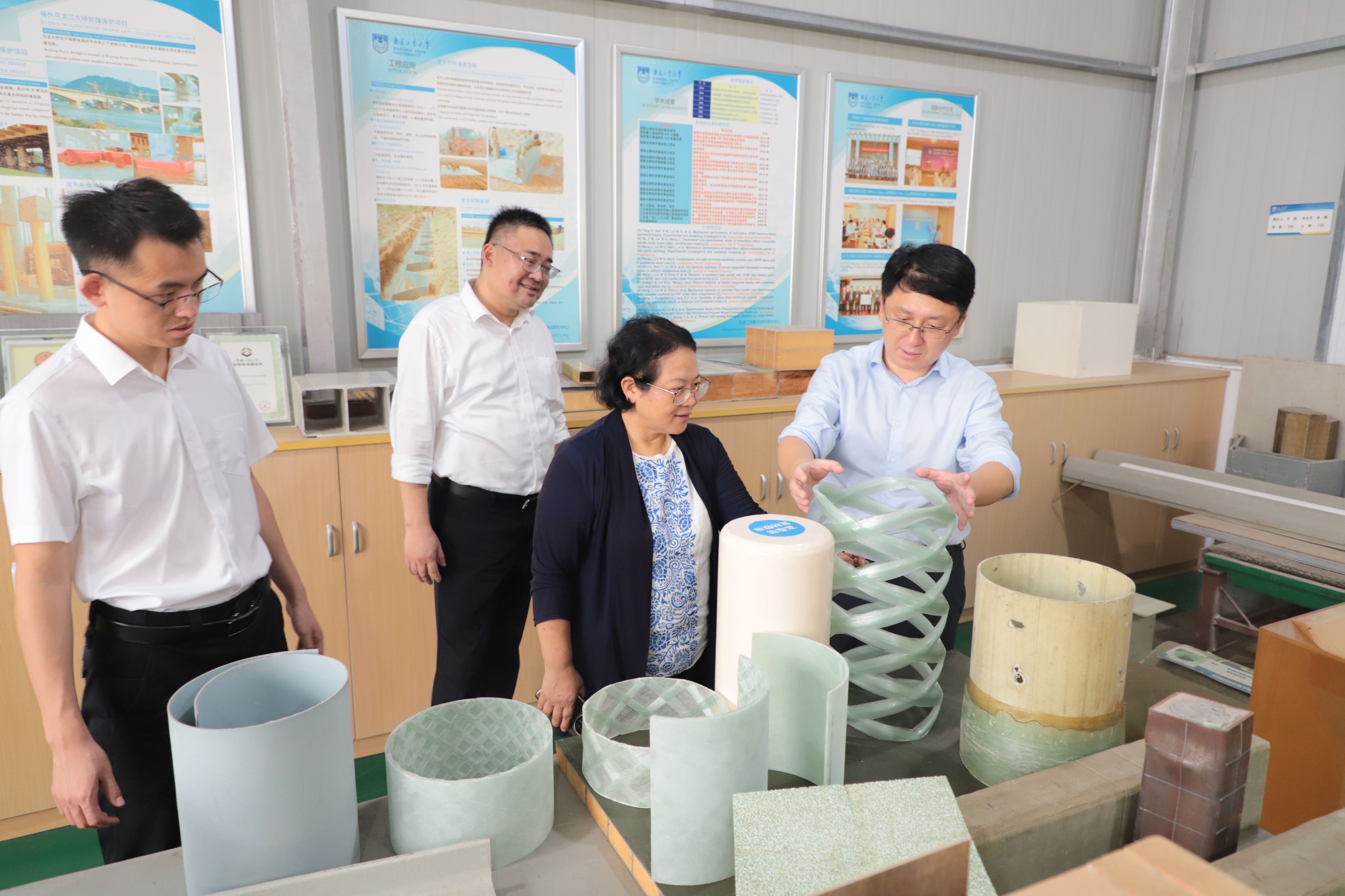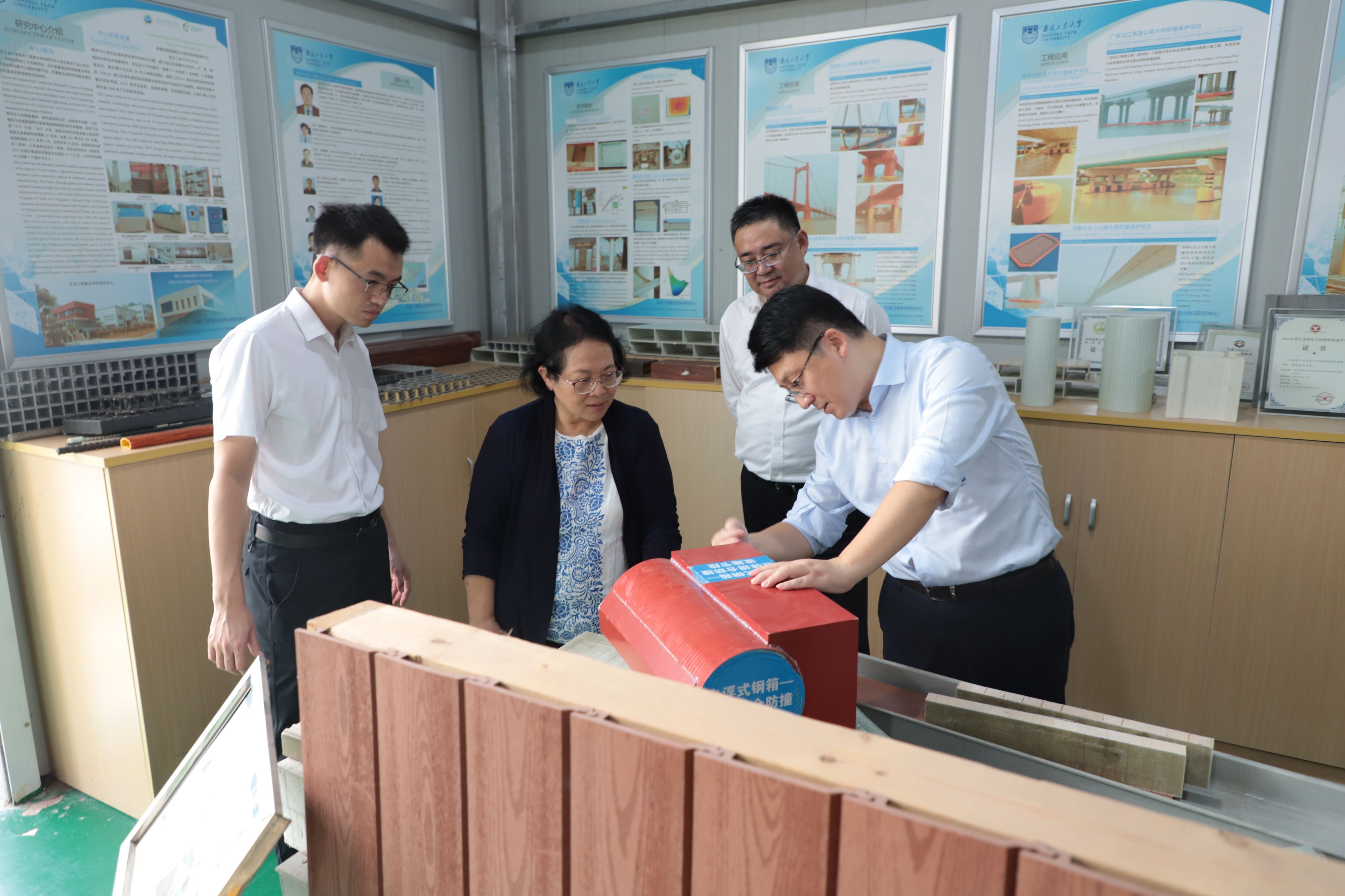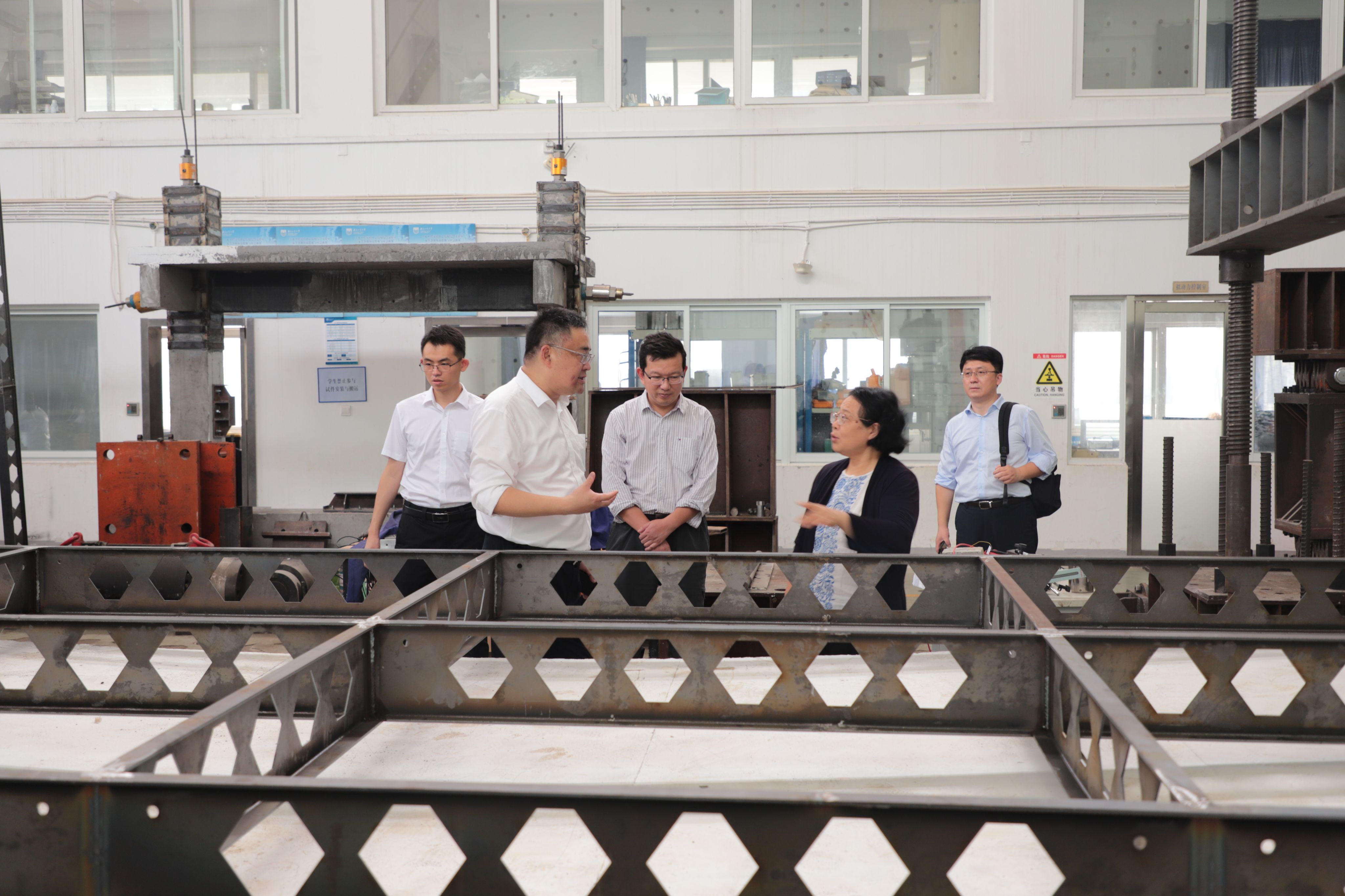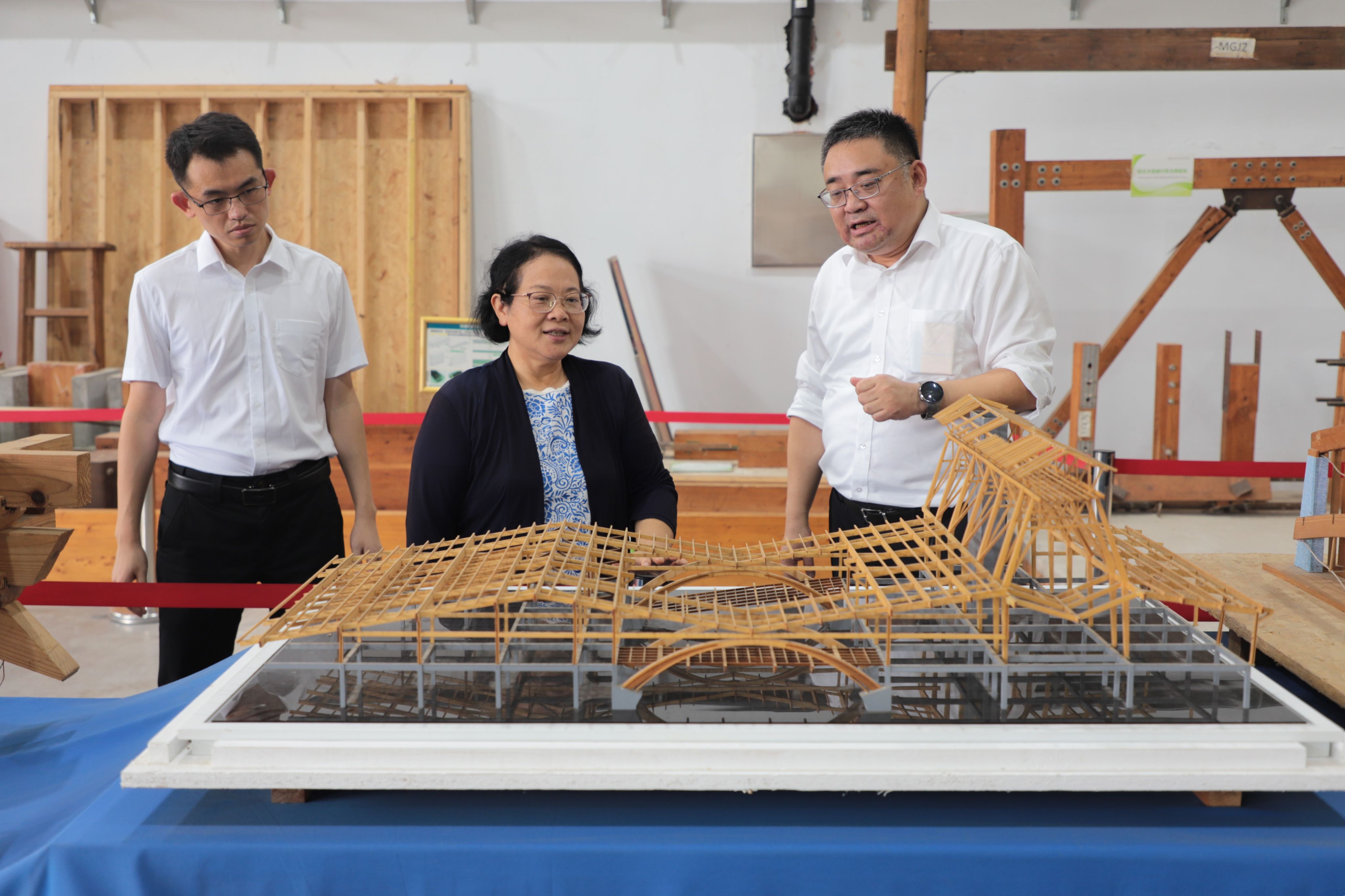 在副董事长陆伟东、经理方海的陪同下,陈新司长一行参观了太阳集团tyc33455官网现代木结构实验室、复合材料结构实验室、结构综合实验室等。