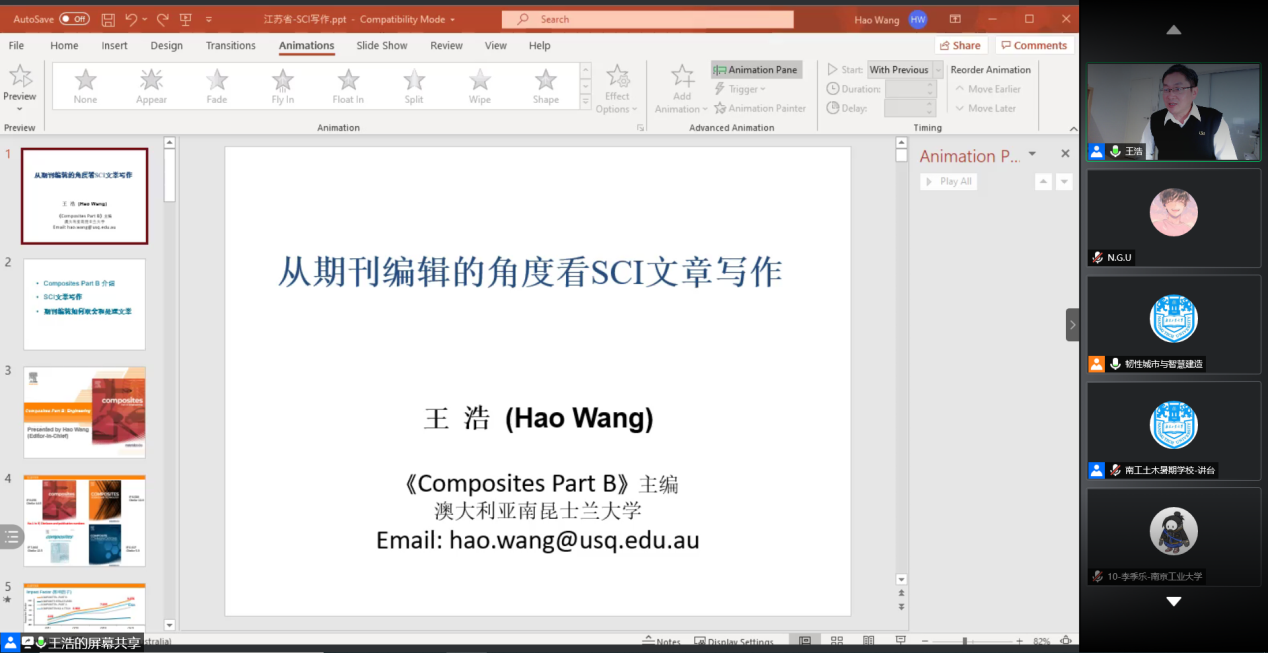 7月11日下午,中建二局华东公司贾学军副总工程师给大家带来了“中建二局施工现场智慧工地应用管理探索”主题报告,贾总从工程应用角度给学员们展示了在大数据、人工智能时代,作为古老学科的土木工程依然大有可为。中国建筑科学研究院夏绪勇研究员给学员们带来了“自主BIM技术助力装配式建筑智能建造”讲座,夏老师勉励员工们勇于做出有自主知识产权的成果,打破国外垄断。最后,澳大利亚南昆士兰大学王浩教授(Composites Part B (IF: 9.078) 主编)给大家带来了“SCI论文写作”主题报告,王浩教授从期刊主编角度,分享了SCI论文在准备、撰写、投稿阶段的技巧及注意点。