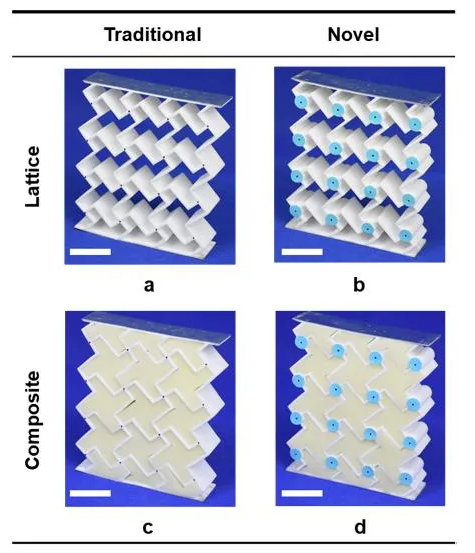 近期,太阳集团tyc33455官网的任鑫副教授团队在Composite Structures期刊上发表了题为“A novel auxetic chiral lattice composite: Experimental and numerical study”的论文。论文针对传统负泊松比结构刚度低,易屈曲等问题设计出一种由负泊松比手性晶格作为增强相,PU泡沫作为基质的新型负泊松比复合材料。