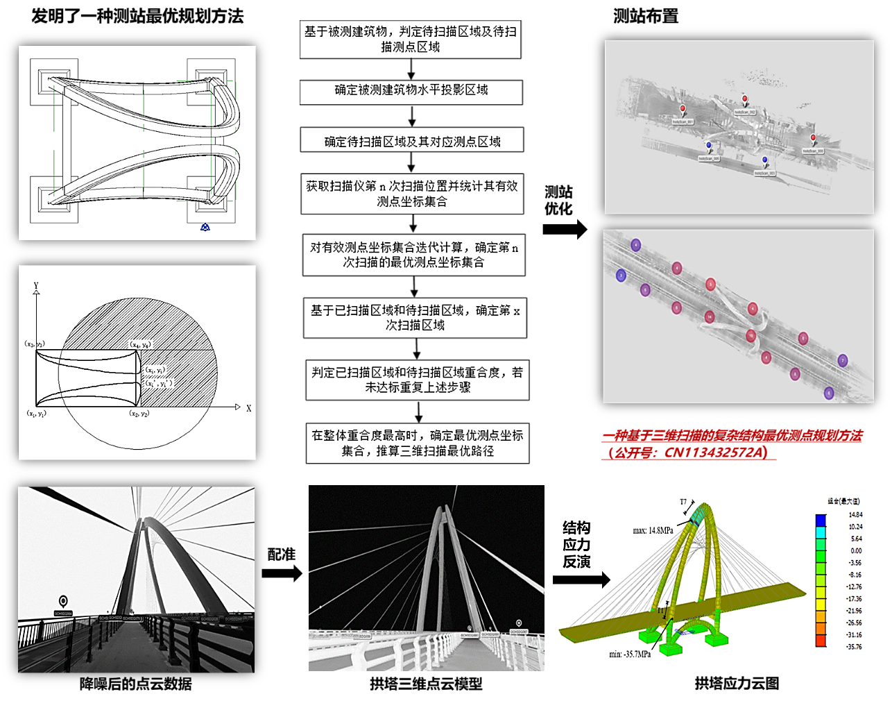 针对异形独塔斜拉桥主塔节段拼装线形控制难度大的问题,提出基于三维扫描的复杂结构最优测点规划方法,在三维扫描采集的原始点云数据基础上,将统计滤波算法和双边滤波算法相结合对点云数据进行降噪处理。然后基于迭代最近点(ICP)算法对点云数据进行配准和精简,构建全桥三维点云模型,并与有限元模型融合,反演结构实际应力状态,提出了基于三维扫描的异形桥塔节段拼装精度控制方法,突破了传统监测方法的局限性。相关研究对桥梁钢混结合段施工质量实时控制、异形钢拱塔的节段拼装线形控制具有参考意义,推动了桥梁施工监测向智能化方向发展。