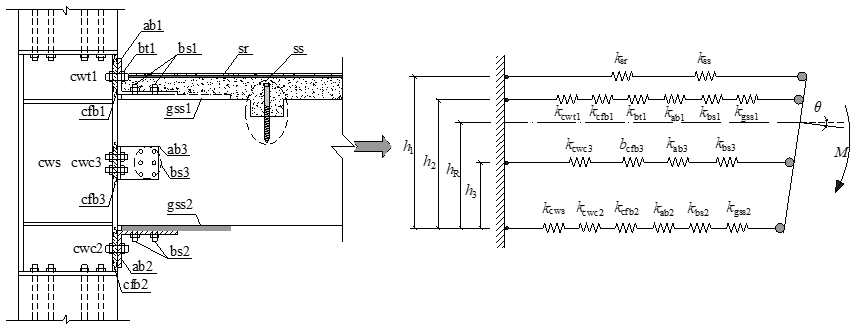 图2 负弯矩下组件法计算模型