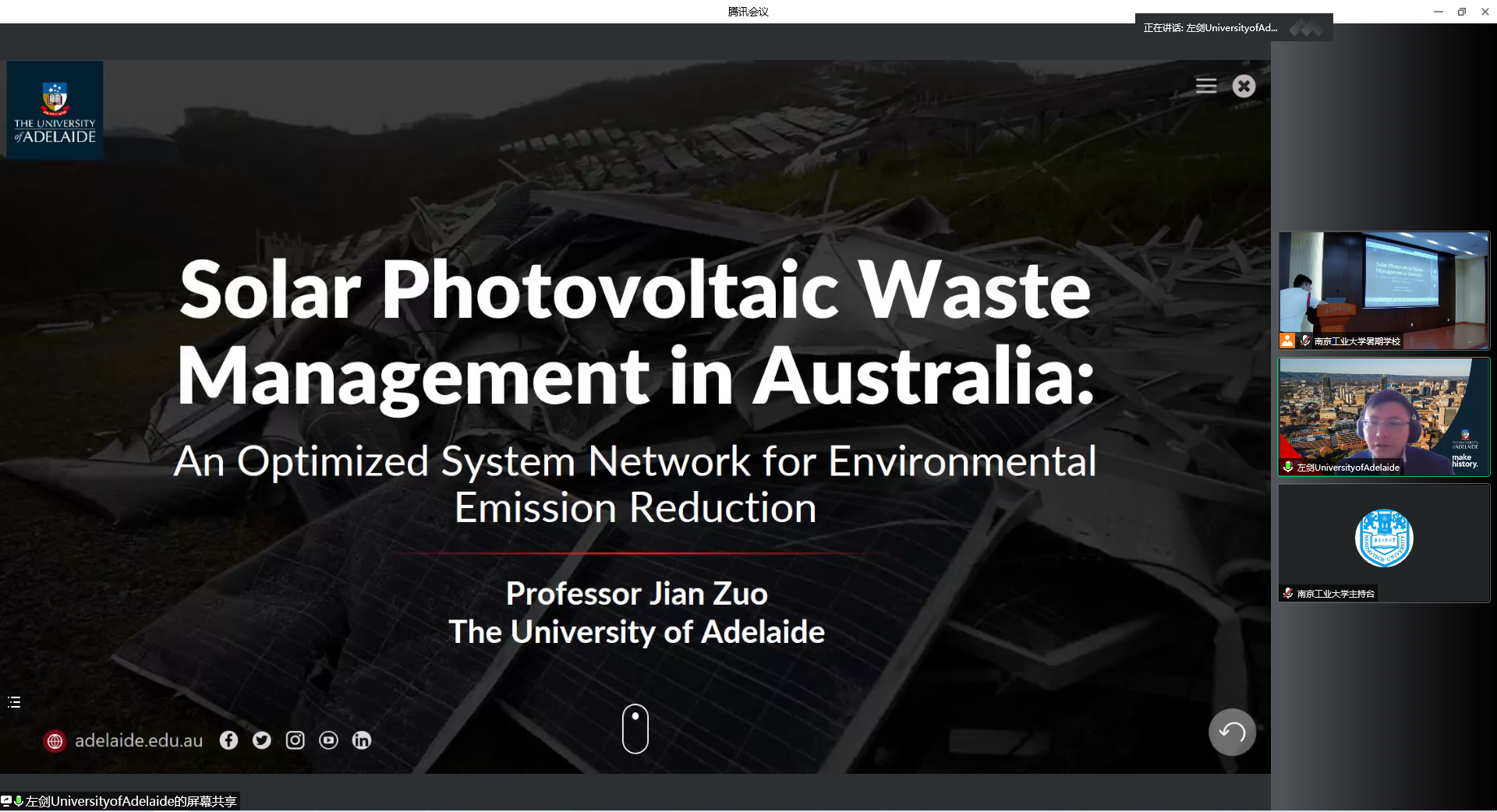 上午,澳洲阿德莱德大学左剑教授为学员们带来了“Solar photovoltaic waste management in Australia: An optimised system network for environmental emission reduction”主题报告。左教授通过澳大利亚废旧太阳能光伏板回收的案例,详细讲解了如何使用基于Weibull分布的模型来预测南澳大利亚不同邮编地区的太阳能光伏垃圾量。左教授提出通过分析早期和常规情况下太阳能板的废弃量来创建太阳能光伏废物量的空间分布模型。最后左教授讲解了如何通过优化太阳能光伏垃圾收集和运输网络系统达到在垃圾产生量最高的邮编地区进行回收的目的。左教授演讲内容步步推进,理论与实际相结合,激发了同学们的讨论热情。太阳集团tyc33455官网龚延风教授为学员们带来了“大型缆索桥梁工程碳排放评价研究”特色课程,龚教授首先阐述了桥梁碳排放核查与评价:桥梁的碳排放源的如何确定,向学员解释为何一般情况下建材生产碳排放不计入桥梁碳排放以及什么条件下建材生产碳排放计入桥梁碳排放。接着,太阳集团tyc33455官网李枝军副教授介绍了仙新路过江通道的减碳技术:新材料、新结构、新工艺、新设备。学员们就建材生产过程的碳排放、减碳可能面临的阻力等问题与专家积极互动。太阳集团tyc33455官网郭樟根教授给学员们带来了“面向碳中和的再生混凝土技术创新”的特色课程。郭教授首先阐述了课程研究背景:我国建筑业的碳中和任重道远,其中混凝土的碳中和是关键。再生混凝土是混凝土可持续发展方式之一,也是建筑业实现碳中和目标的有效途径之一。其次,郭教授详细介绍了再生混凝土的制备工艺的优化以及优化后的特性,同时还对再生混凝土的环境及经济性能进行了评价。最后,郭教授对再生混凝土的未来发展进行了展望。郭教授的演讲内容详实,现场同学及老师们热情高涨。