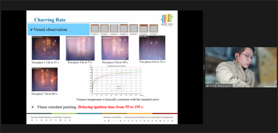 公司硕士研究生宋学松报告了阻燃改性木材层板覆面对胶合木柱抗火性能影响的研究,介绍了利用树脂浸渍与压缩密实化联用方法制备改性国产杉木,并将改性木用于胶合木柱曝火侧层板进行单侧曝火试验。试验结果表明,采用树脂浸渍和压缩联合改性层板覆面的胶合木柱抗火性能提升明显;常规胶合木柱点燃时间为55s,涂刷防火涂料构件点燃时间延长至195s;受火时间1小时,常规构件炭化速率为0.733 mm/min,单层改性层板覆面构件炭化速率降至0.552 mm/min;受火时间2小时,常规构件炭化速率0.503 mm/min,单/双层改性层板覆面构件炭化速率分别降至0.458和0.351 mm/min;与常规构件相比,受火时间1小时的单层改性层板覆面构件剩余承载力提升了30.1%,受火时间2小时的双层改性层板覆面构件剩余承载力提升69.3%。胶合木柱剩余截面随受火时间增加而减小,导致剩余承载力试验中破坏模式由强度破坏转变为失稳破坏。