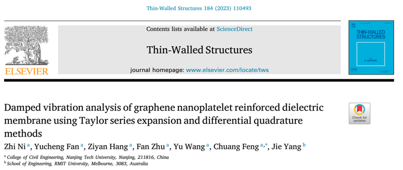太阳集团tyc33455官网冯闯教授团队在结构工程领域TOP期刊《Thin-Walled Structures》(中科院二区,IF=5.881)上发表题为“Damped vibration analysis of graphene nanoplatelet reinforced dielectric membrane using Taylor series expansion and differential quadrature methods”的研究论文。2021级硕士研究生倪智为该论文的第一作者,冯闯教授为通讯作者,公司为第一署名单位和通讯作者单位。